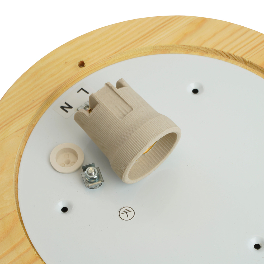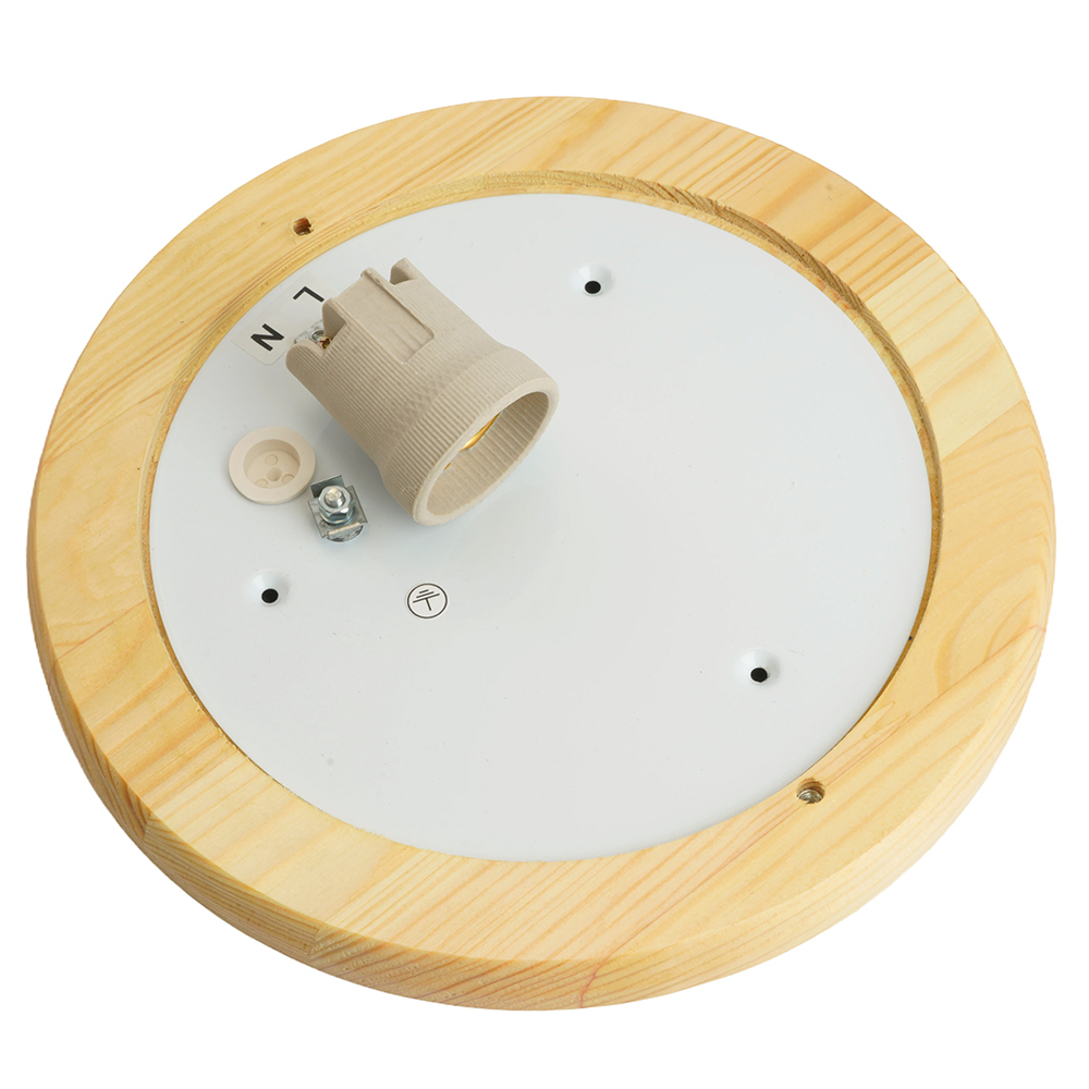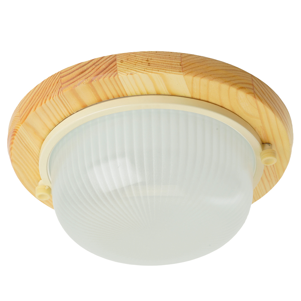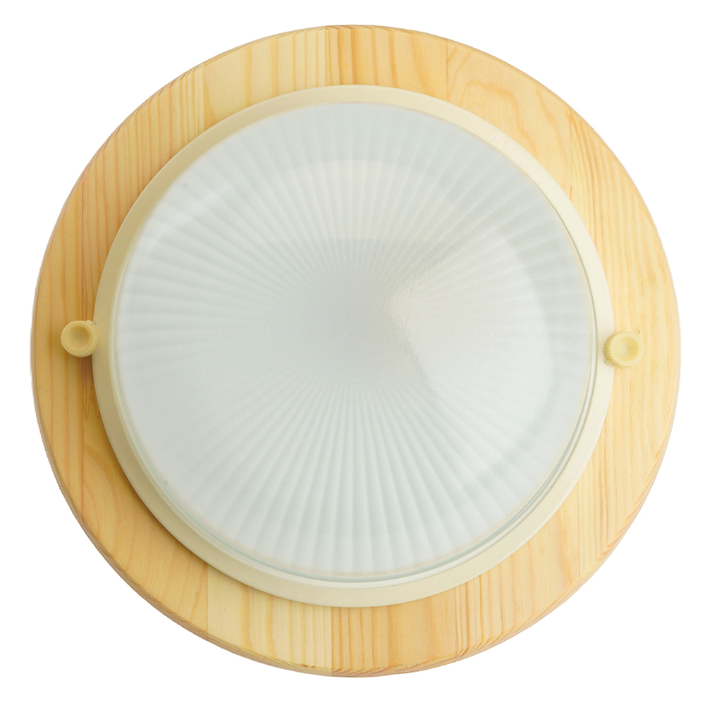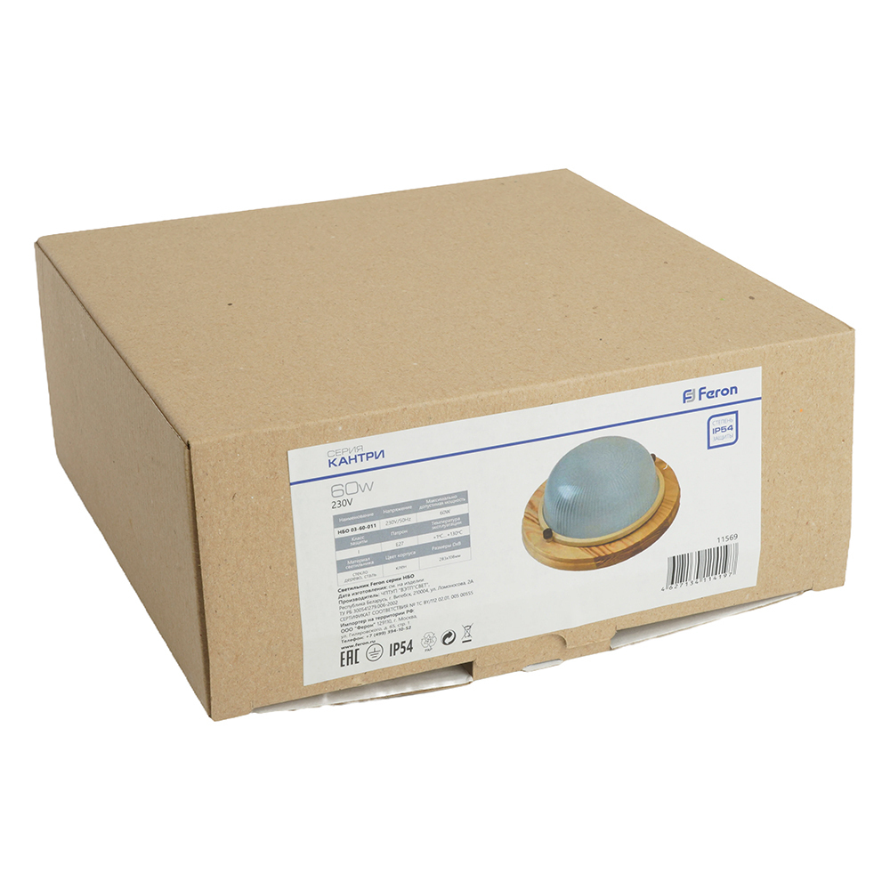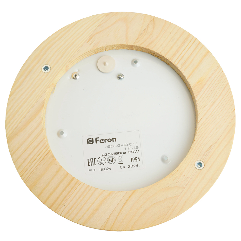 Светильник накладной под лампу, пылевлагозащищённый (НБО) FERON НБО 03-60-011, E27 60W, 220V, IP54, цвет клен, корпус сталь, дерево, рассеиватель стекло, 220*220*84
