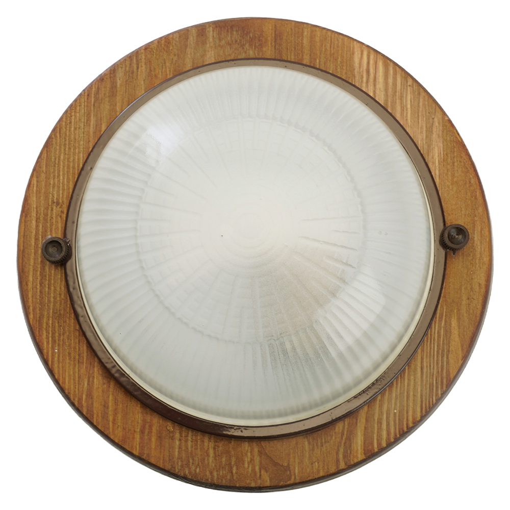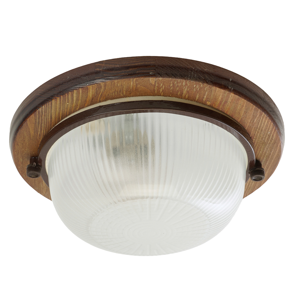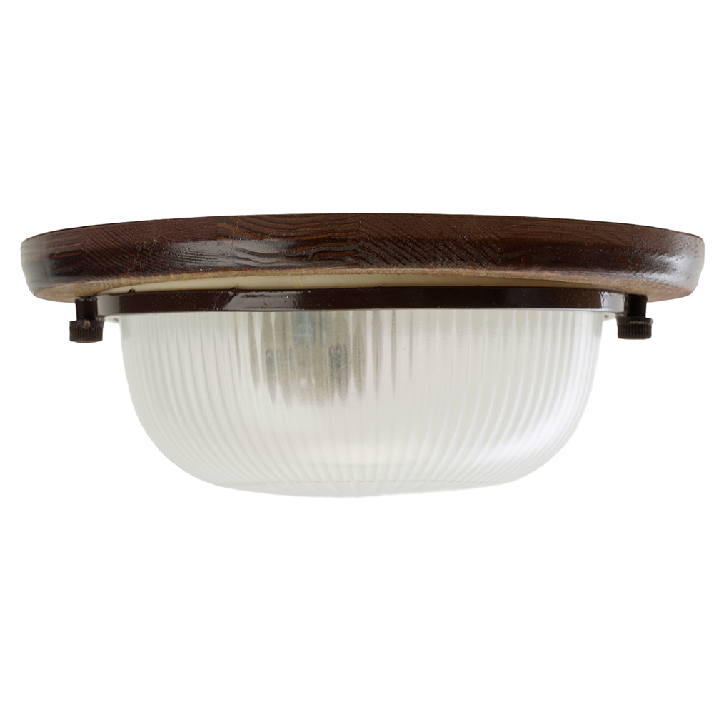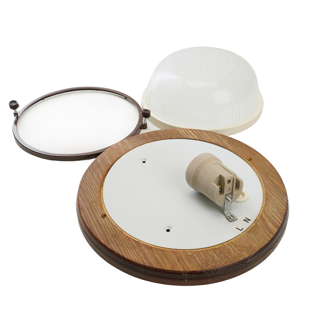 Светильник накладной под лампу, пылевлагозащищённый (НБО) FERON НБО 03-60-021, E27 60W, 220V, IP54, цвет орех, корпус сталь, дерево, рассеиватель стекло, 220*220*84