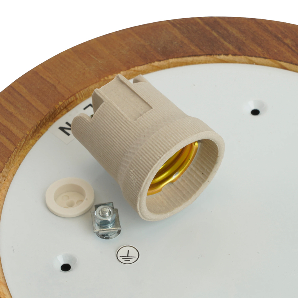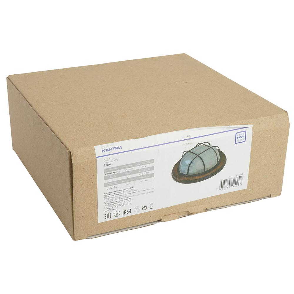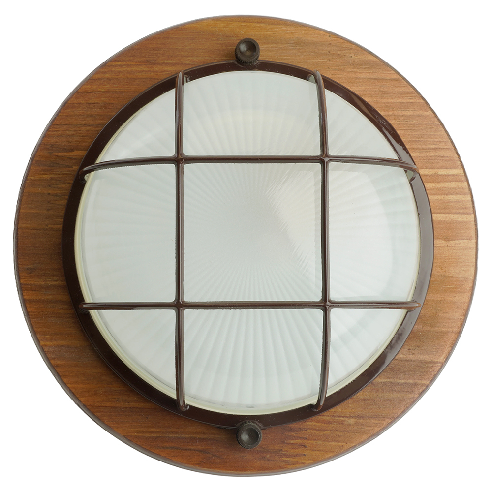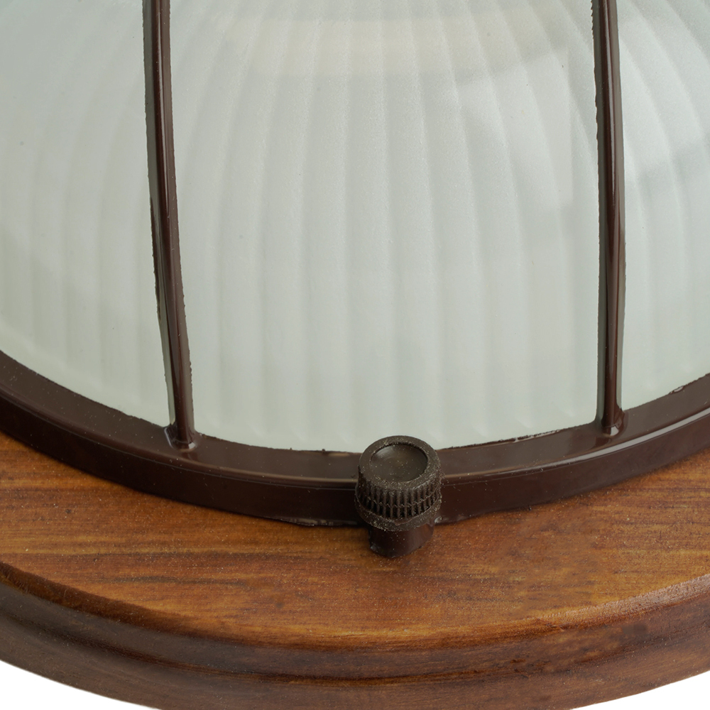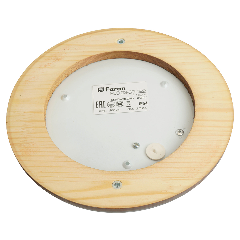 Светильник накладной под лампу, пылевлагозащищённый (НБО) FERON НБО 03-60-022, E27 60W, 220V, IP54, цвет орех, корпус сталь, дерево, рассеиватель стекло, 220*220*92