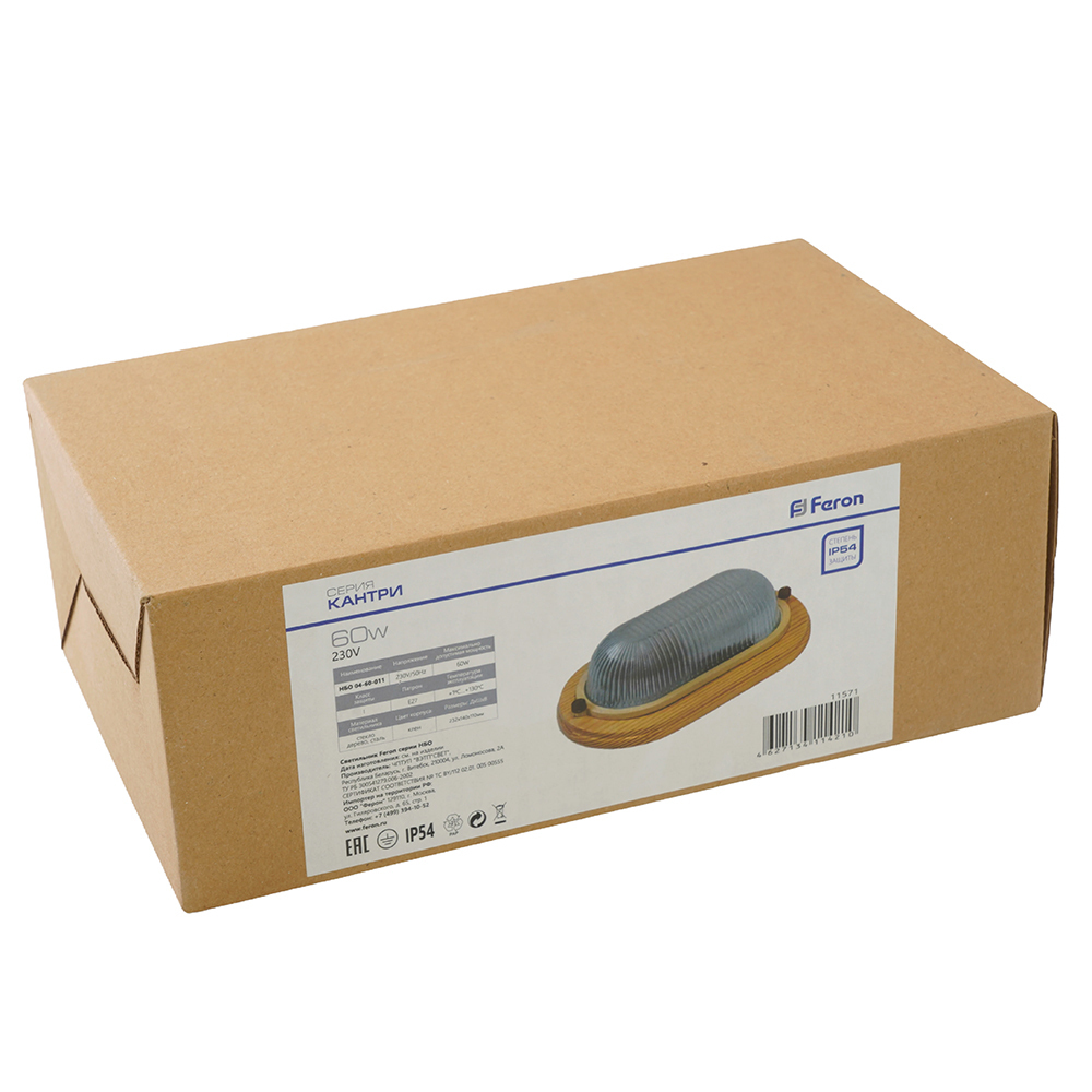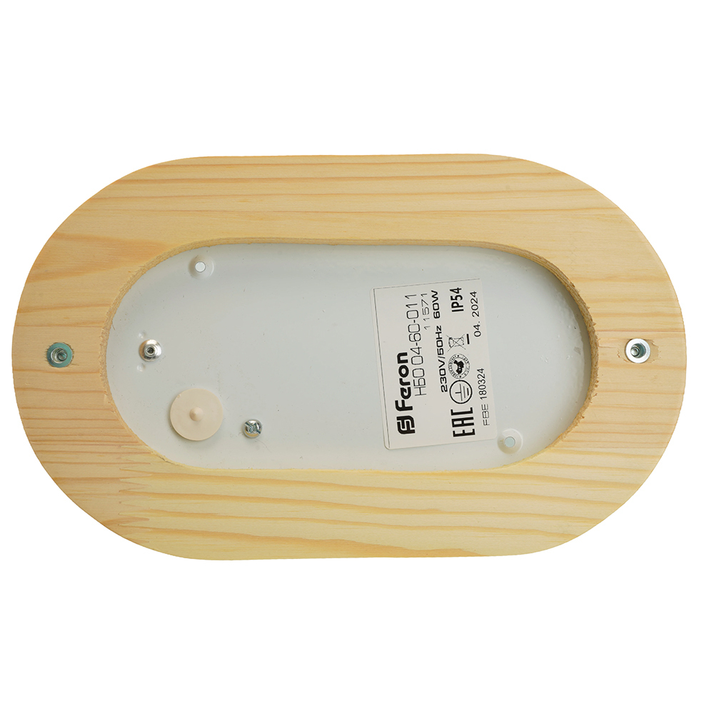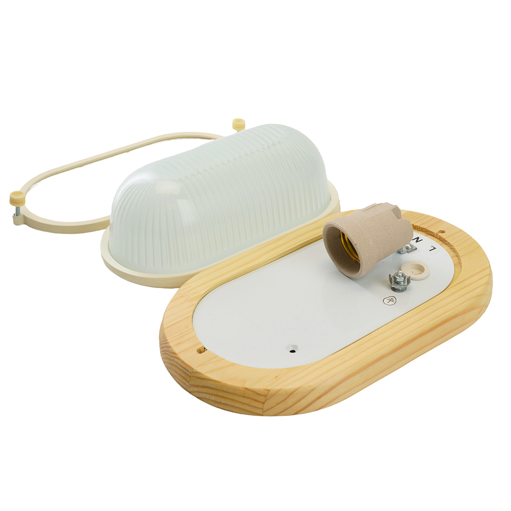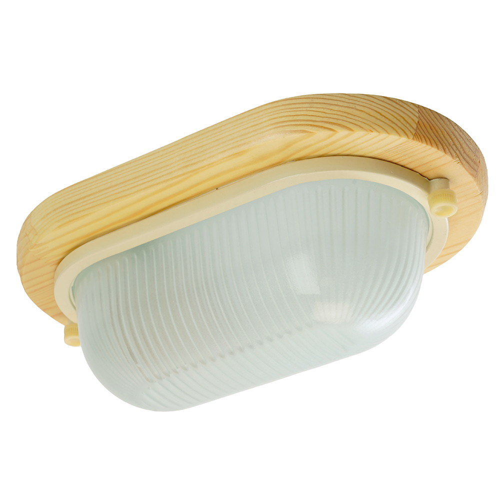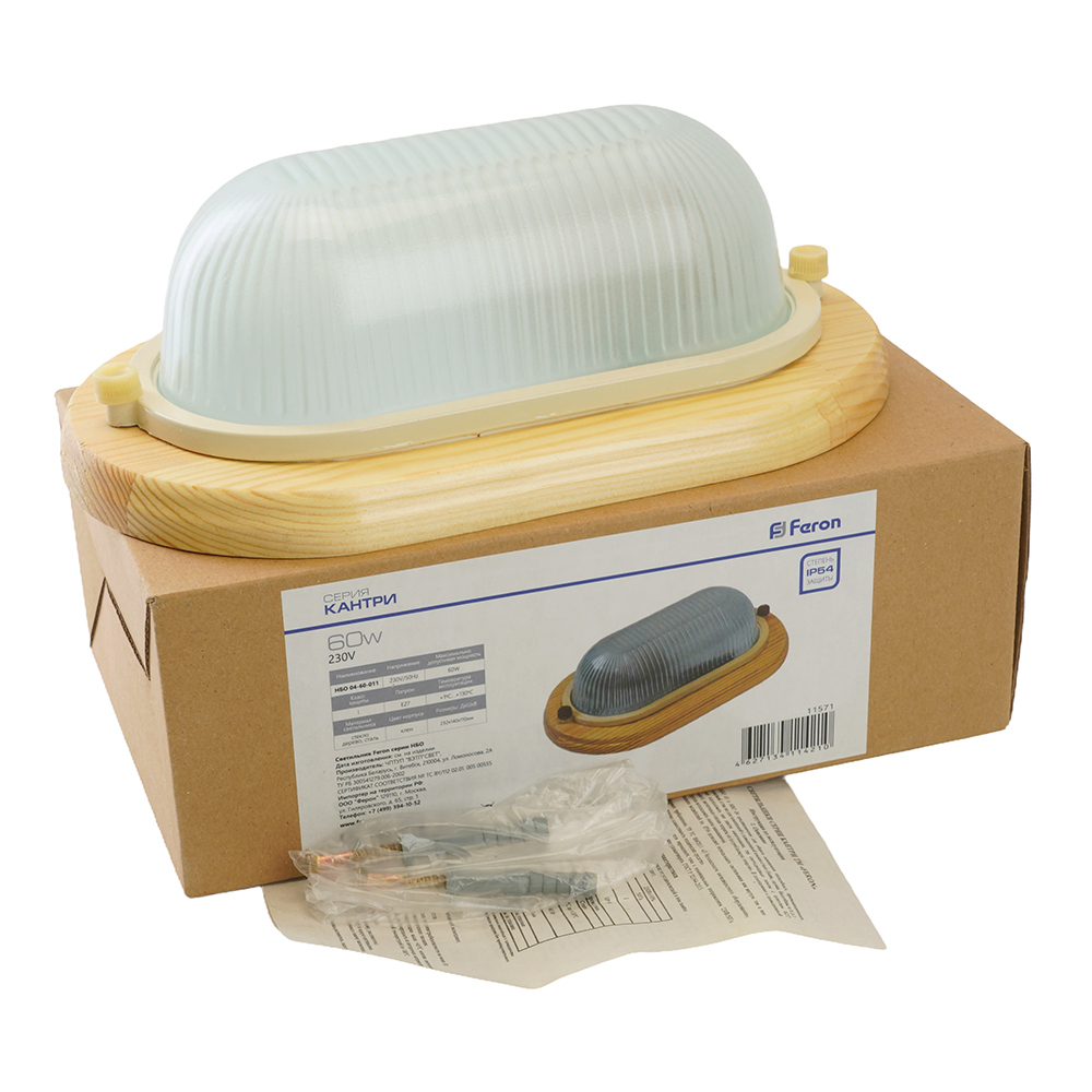 Светильник накладной под лампу, пылевлагозащищённый (НБО) FERON НБО 04-60-011, E27 60W, 220V, IP54, цвет клен, корпус сталь, дерево, рассеиватель стекло, 230*140*75