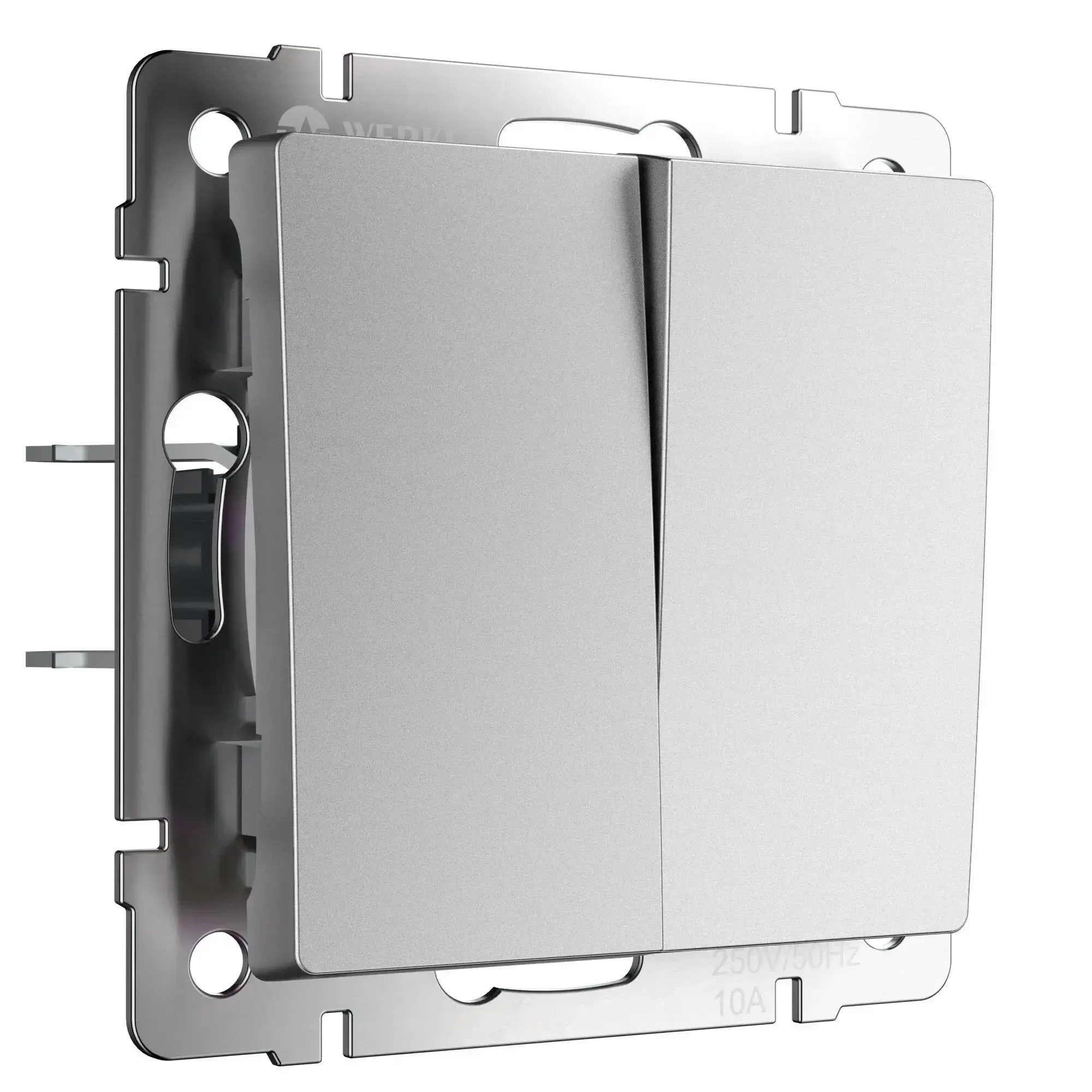Перекрестный выключатель двухклавишный серебряный матовый W1123065 является ключевым элементом любой домашней электрической сети, предназначенным для управления освещением. Перекрестный выключатель представляет собой механизм нажимного типа с металлическим суппортом и декоративными накладками. Установка перекрестного выключателя производится в монтажную коробку, при этом видны только внешняя лицевая панель и накладная рамка. Скрытый монтажный механизм оснащён суппортом из нержавеющей стали, обеспечивающим надёжную фиксацию изделия в подрозетнике. Контакты из фосфористой бронзы и серебра обладают высокой прочностью и долговечностью, выдерживая до 40 000 циклов работы. Высококачественные поликарбонатные накладки устойчивы к воздействию высоких температур. Механизм имеет удобный способ подключения проводов с сечением от 0,75 мм² до 2,5 мм². Двухклавишный встраиваемый выключатель отличается удобством использования, безопасностью и гарантирует стабильное функционирование механизма.