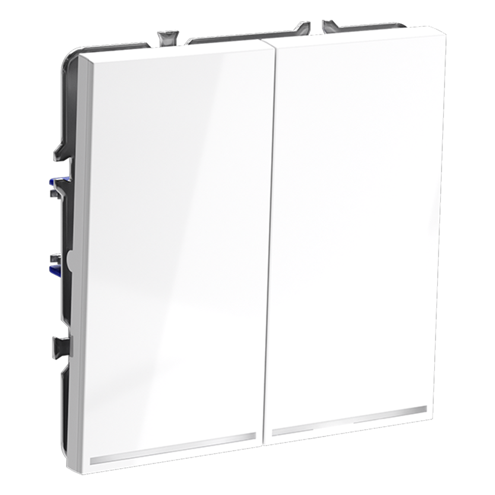 Проходной переключатель встраиваемый VOLTUM S70 двухклавишный с подсветкой 10А, (белый глянцевый)