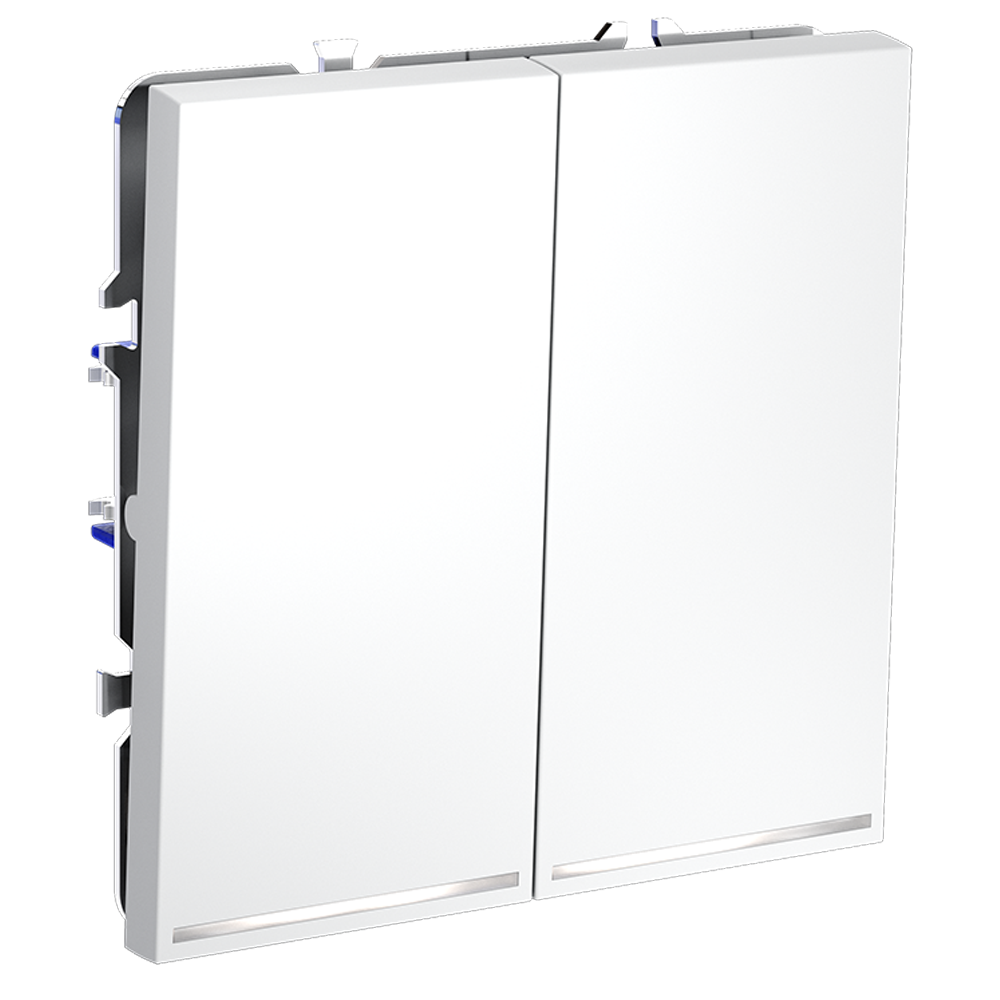 Проходной переключатель встраиваемый VOLTUM S70 двухклавишный с подсветкой 10А, (белый матовый)