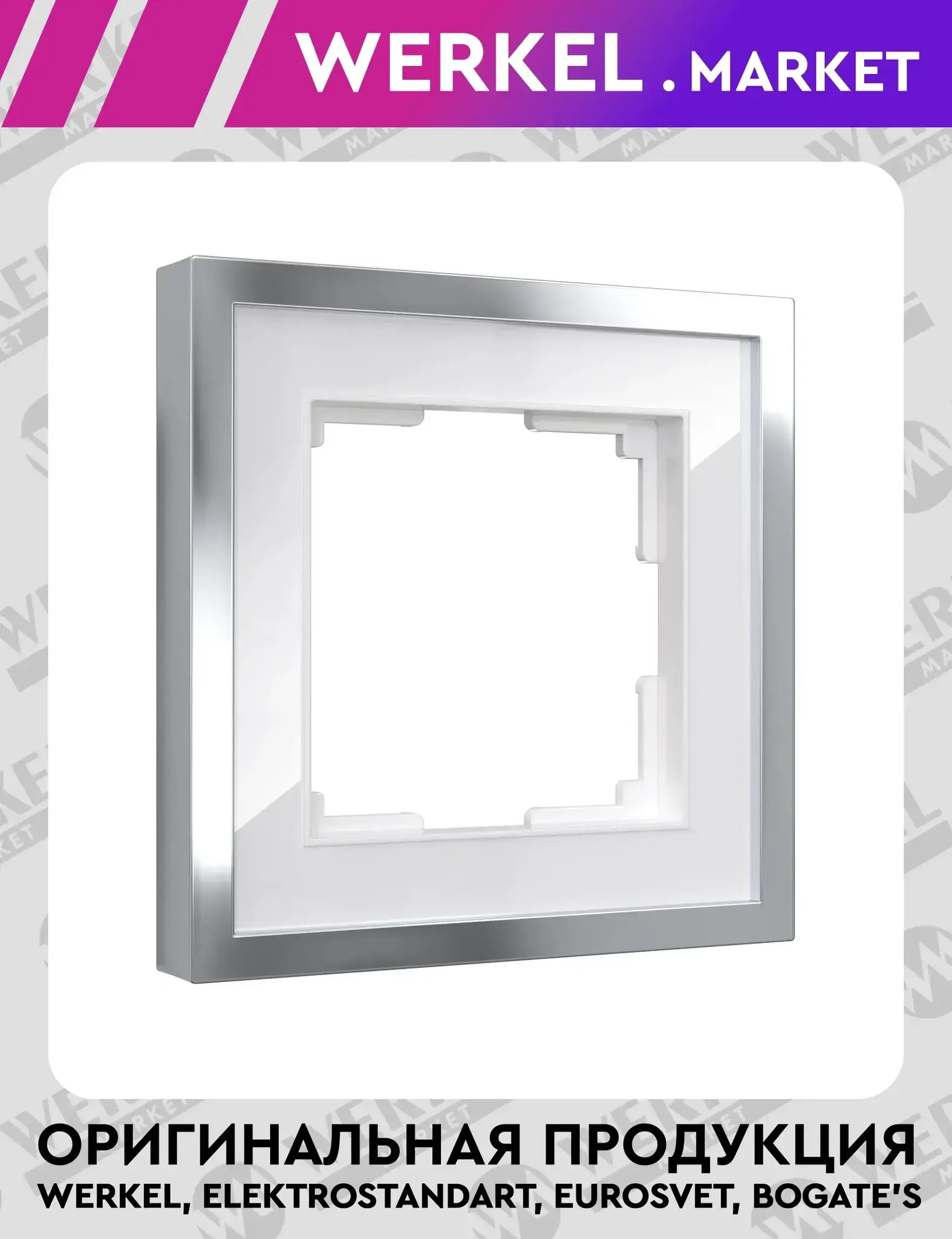 Рамка на 1 пост Baguette белый/серебро Werkel – стиль и изысканность в деталях интерьера Завершите образ вашего дизайна с помощью рамки серии Baguette от Werkel, модель W0012850. Это уникальное сочетание металлической окантовки серебристого цвета и белого акрилового фона придаёт изделию особой элегантности и делает его ярким акцентом в любом интерьере. Благодаря двухцветному оформлению рамка гармонично дополнит как классические, так и современные стили: лофт, минимализм, арт-деко или скандинавский дизайн. Лаконичные формы и продуманные материалы обеспечивают универсальность и долговечность использования. Основные преимущества: Уникальный дизайн — комбинация белого акрила и серебряной металлической рамки создаёт эффект контраста и добавляет интерьеру светлоты и изысканности. Качественные материалы — прочный металл и ударопрочный акрил обеспечивают устойчивость к повреждениям и длительный срок службы. Универсальная совместимость — подходит ко всем стандартным механизмам Werkel с посадочным размером 58 × 58 мм , что позволяет создать единый стиль всех элементов электроустановки. Простота установки — конструкция разработана для удобного и быстрого монтажа. Стильное завершение интерьера — идеально дополняет выключатели и розетки в современном и классическом дизайне. Технические характеристики: Бренд: Werkel Тип изделия: Рамка однопостовая Серия: Baguette Цвет: Белый / Серебро Материал: Металл + Акрил Количество постов: 1 Посадочный размер: 58 × 58 мм Габариты (Д × Ш × В): 94 × 94 × 12 мм Рамка одноместная Baguette W0012850 — это выбор тех, кто ценит стиль, качество и внимание к деталям. Добавьте нотку шика в ваш дом или офис с помощью современных решений от Werkel!