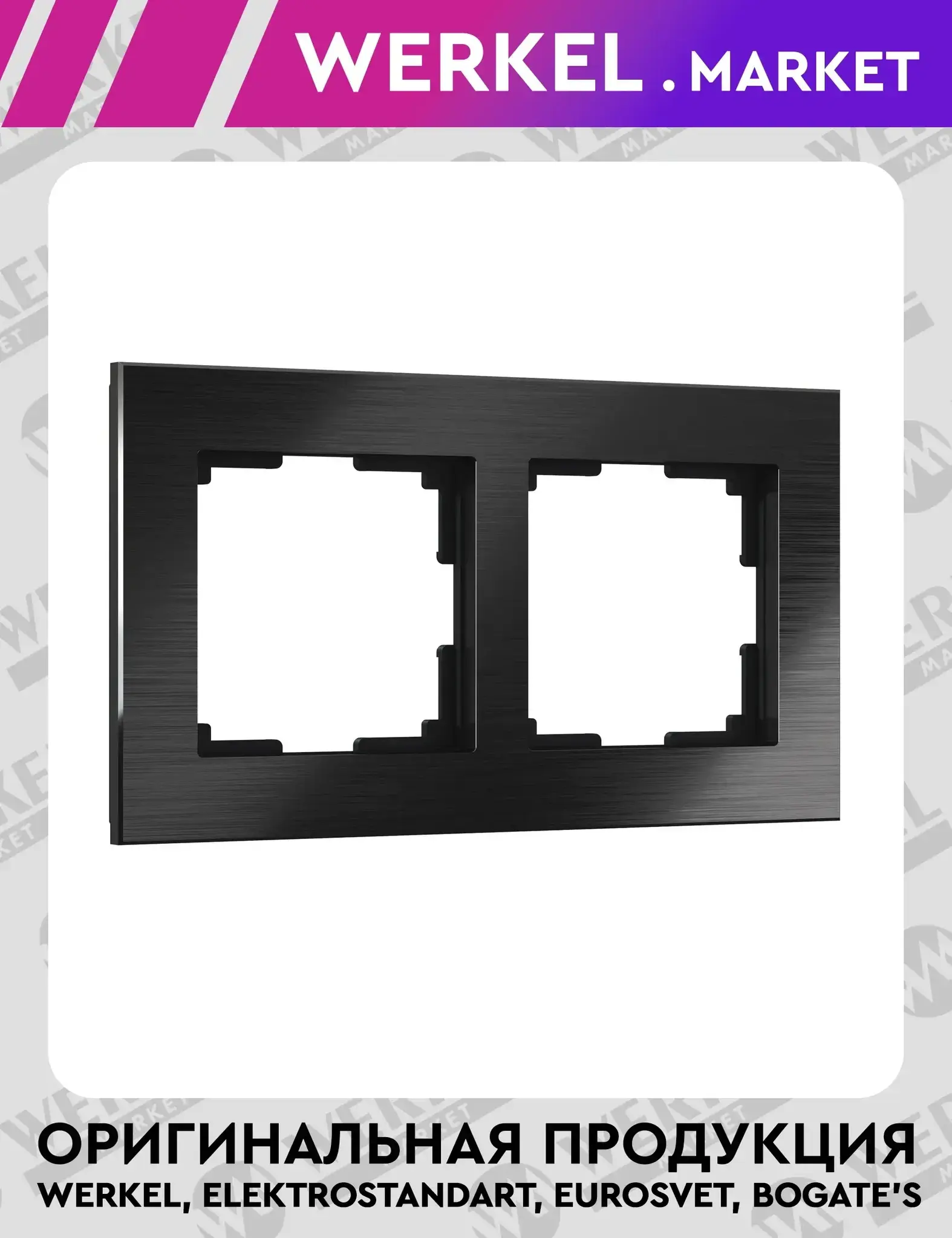 Рамка на 2 поста Aluminium цвет черный алюминий W0021708 Werkel – элегантность и надежность для вашего интерьера Завершите образ вашей электроустановки с помощью алюминиевой рамки серии Aluminium от Werkel, модель W0021706. Это стильное и функциональное решение, созданное для тех, кто ценит современный дизайн, качество материалов и продуманность каждой детали. Благодаря лаконичному внешнему виду и выдержанному оттенку черного алюминия, рамка органично вписывается в интерьеры в стиле минимализм, хай-тек, индустриальный или скандинавский. Изящные формы и четкие линии делают её универсальным элементом декора, который подчеркнет хороший вкус и внимание к деталям. Основные преимущества рамки серии Aluminium: Стильный дизайн — строгие линии и рифленая текстура придают изделию солидный и современный вид. Высококачественный материал — изготовлена из прочного алюминиевого сплава, устойчивого к коррозии, механическим повреждениям и изменению цвета со временем. Универсальная совместимость — подходит ко всем стандартным механизмам Werkel с посадочным размером 58 × 58 мм , что позволяет создать целостный и гармоничный ансамбль электроустановочных изделий. Простота монтажа — конструкция разработана так, чтобы установка была быстрой и удобной как для профессионалов, так и для самостоятельного ремонта. Безопасность и экологичность — соответствует высоким стандартам пожаробезопасности и не содержит вредных веществ, что подтверждает заботу о здоровье и окружающей среде. Технические характеристики: Бренд: Werkel Тип изделия: Рамка двухпостовая Серия: Aluminium Цвет: Черный алюминий Материал: Алюминиевый сплав Количество постов: 1 Посадочный размер: 58 × 58 мм Габариты (Д × Ш × В): 90 × 90 × 11 мм Степень защиты: IP20 Рамка двухместная Aluminium W0021708 — это идеальное сочетание стиля, долговечности и функциональности, которое дополнит любое пространство в современном ключе. Выбирайте качественные решения от Werkel и создавайте интерьер, в котором каждая деталь говорит о вашем стиле!