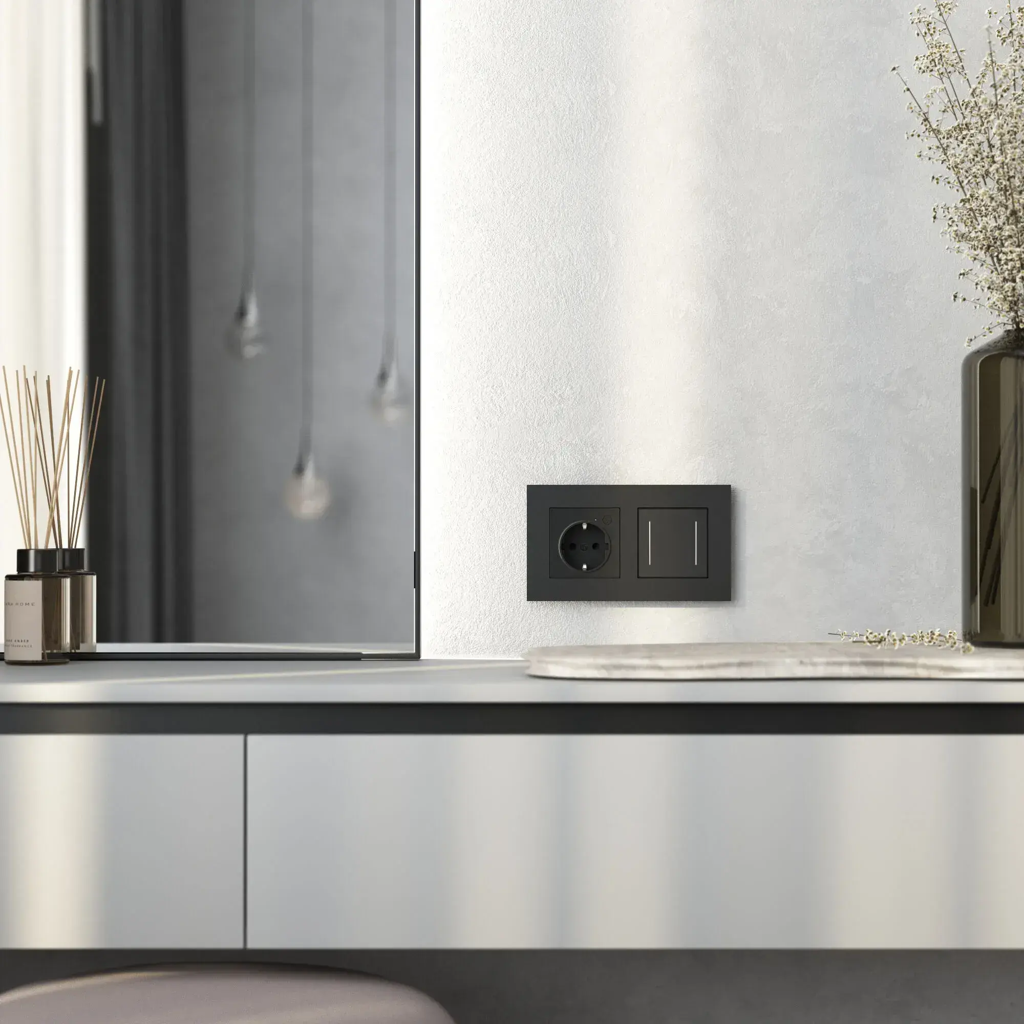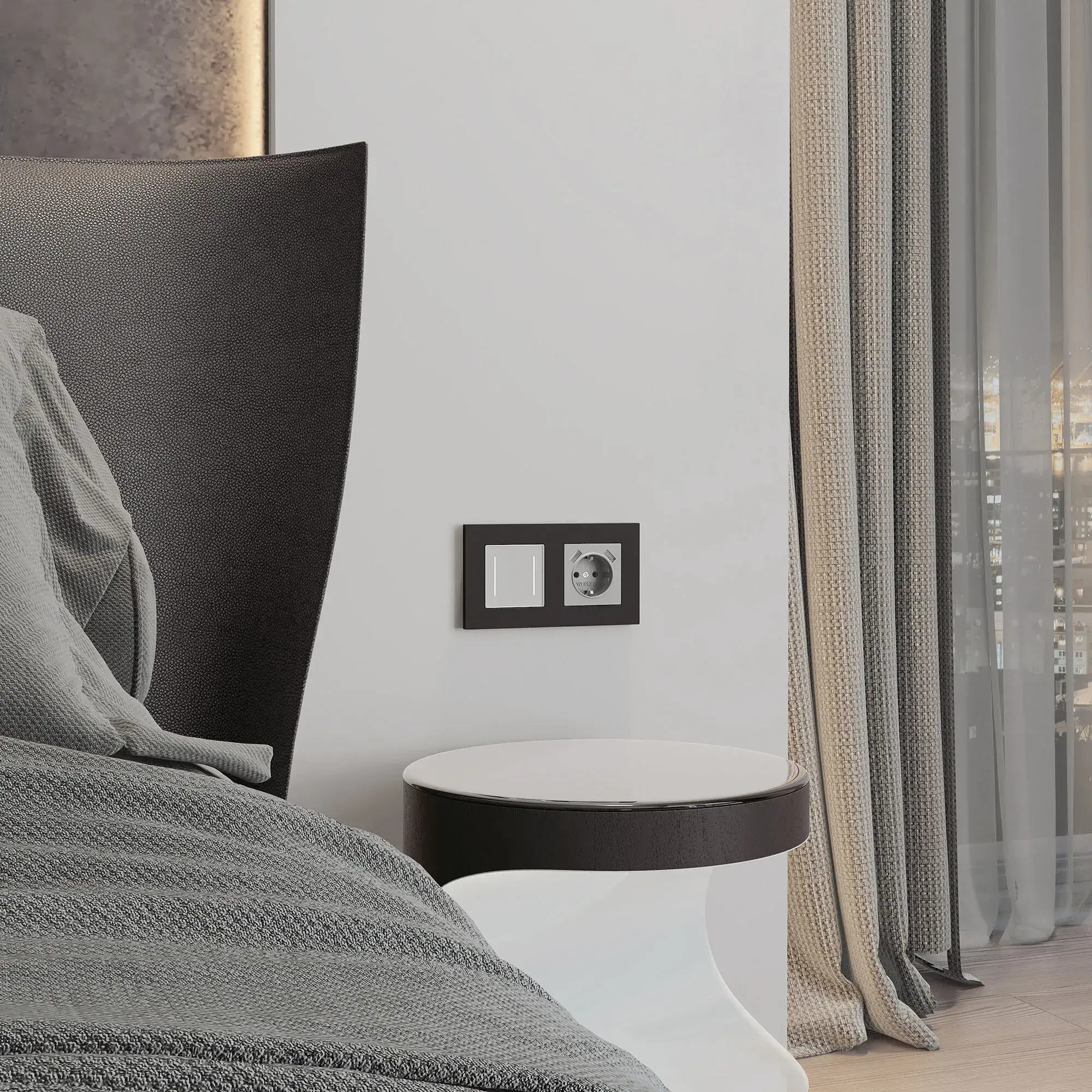 Рамка на 2 поста Slab черная матовая W0022908 Werkel – современное решение для стильного интерьера Серия рамок Slab от Werkel — это рамки из матового пластика, которые станут идеальным дополнением любого современного дизайна. Благодаря своей элегантной матовой фактуре и тактильной мягкости, эти рамки не только приятны на ощупь, но и визуально подчеркивают стилистику помещения. Они гармонично сочетаются с мебелью и интерьером, становясь важным элементом общей композиции. Особенности и преимущества рамок серии Slab: Современный дизайн: черный матовый цвет придает изделию универсальность и позволяет вписать его в любой интерьер — от минимализма до классики. Универсальная совместимость: рамка серии Slab совместима с любыми встраиваемыми механизмами Werkel, что делает ее удобной для использования в различных проектах. Гибкость монтажа: рамка может быть установлена как горизонтально, так и вертикально, что позволяет адаптировать её под любые потребности. Простота установки: быстрый и удобный монтаж обеспечивает экономию времени. Даже начинающий электрик или домашний мастер справится с установкой, следуя инструкции. Размеры двухпостовой рамки: Длина: 166 мм Ширина: 95 мм Высота: 11 мм Посадочный размер: 58 х 58 мм Почему выбирают рамки серии Slab ? Эстетика и практичность: рамки из поликарбоната, матовая текстура устойчива к царапинам и отпечаткам пальцев, сохраняя презентабельный вид долгое время. Универсальность: подходят для любых помещений — от жилых комнат до офисов и общественных пространств. Качество материалов: использование высококачественного поликарбоната гарантирует долговечность и надежность изделия. 👉 Добавьте рамку Slab W0022908 в корзину и создайте современный и стильный интерьер уже сегодня!