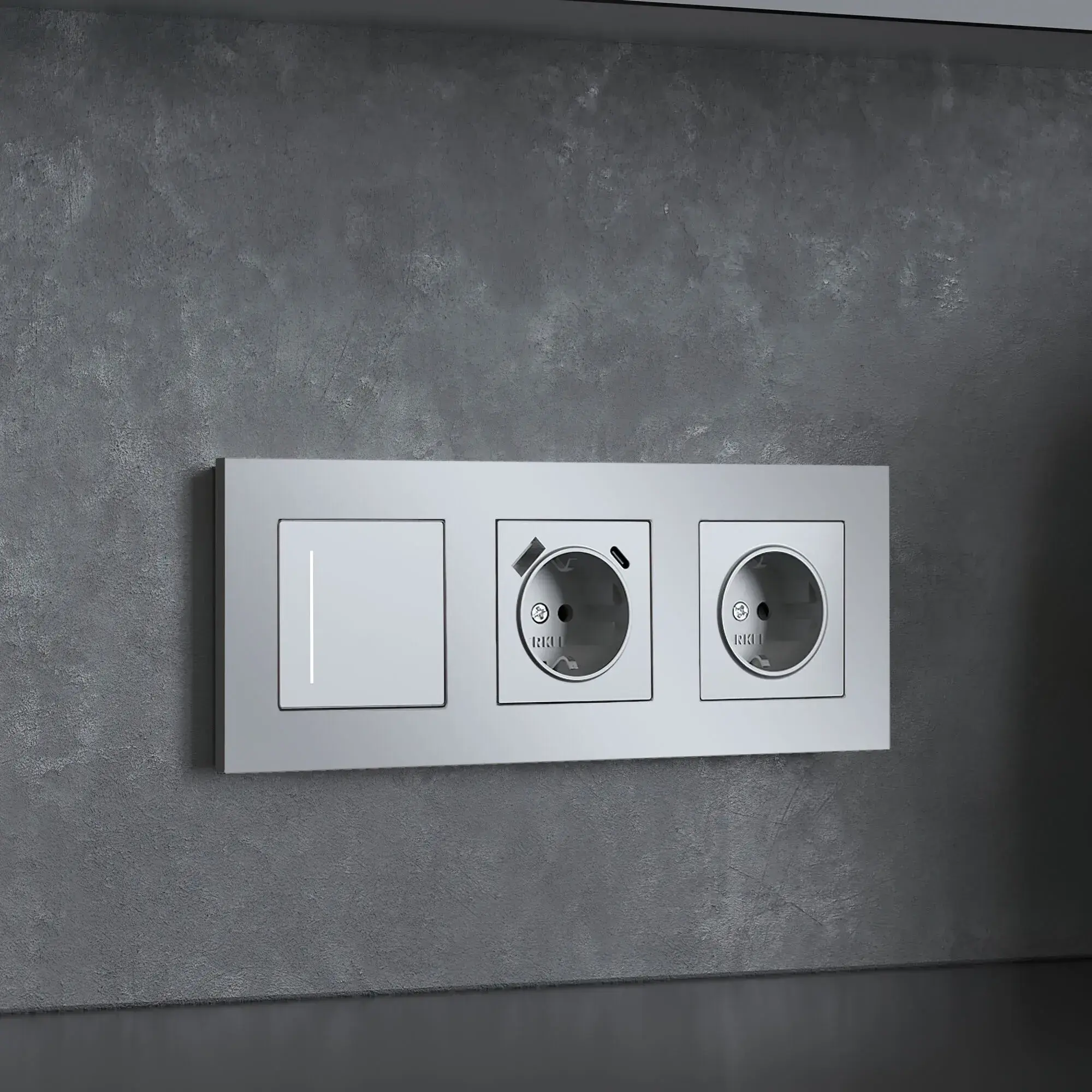 Рамка на 3 поста Slab серебро матовая W0032965 Werkel – современное решение для стильного интерьера Серия рамок Slab от Werkel — это рамки из матового пластика, которые станут идеальным дополнением любого современного дизайна. Благодаря своей элегантной матовой фактуре и тактильной мягкости, эти рамки не только приятны на ощупь, но и визуально подчеркивают стилистику помещения. Они гармонично сочетаются с мебелью и интерьером, становясь важным элементом общей композиции. Особенности и преимущества рамок серии Slab: Современный дизайн: серебряный матовый цвет придает изделию универсальность и позволяет вписать его в любой интерьер — от минимализма до классики. Универсальная совместимость: рамка серии Slab совместима с любыми встраиваемыми механизмами Werkel, что делает ее удобной для использования в различных проектах. Гибкость монтажа: рамка может быть установлена как горизонтально, так и вертикально, что позволяет адаптировать её под любые потребности. Простота установки: быстрый и удобный монтаж обеспечивает экономию времени. Даже начинающий электрик или домашний мастер справится с установкой, следуя инструкции. Размеры трехпостовой рамки: Длина: 238 мм Ширина: 95 мм Высота: 11 мм Посадочный размер: 58 х 58 мм Почему выбирают рамки серии Slab? Эстетика и практичность: рамки из поликарбоната, матовая текстура устойчива к царапинам и отпечаткам пальцев, сохраняя презентабельный вид долгое время. Универсальность: подходят для любых помещений — от жилых комнат до офисов и общественных пространств. Качество материалов: использование высококачественного поликарбоната гарантирует долговечность и надежность изделия. 👉 Добавьте рамку Slab W0032965 в корзину и создайте современный и стильный интерьер уже сегодня!