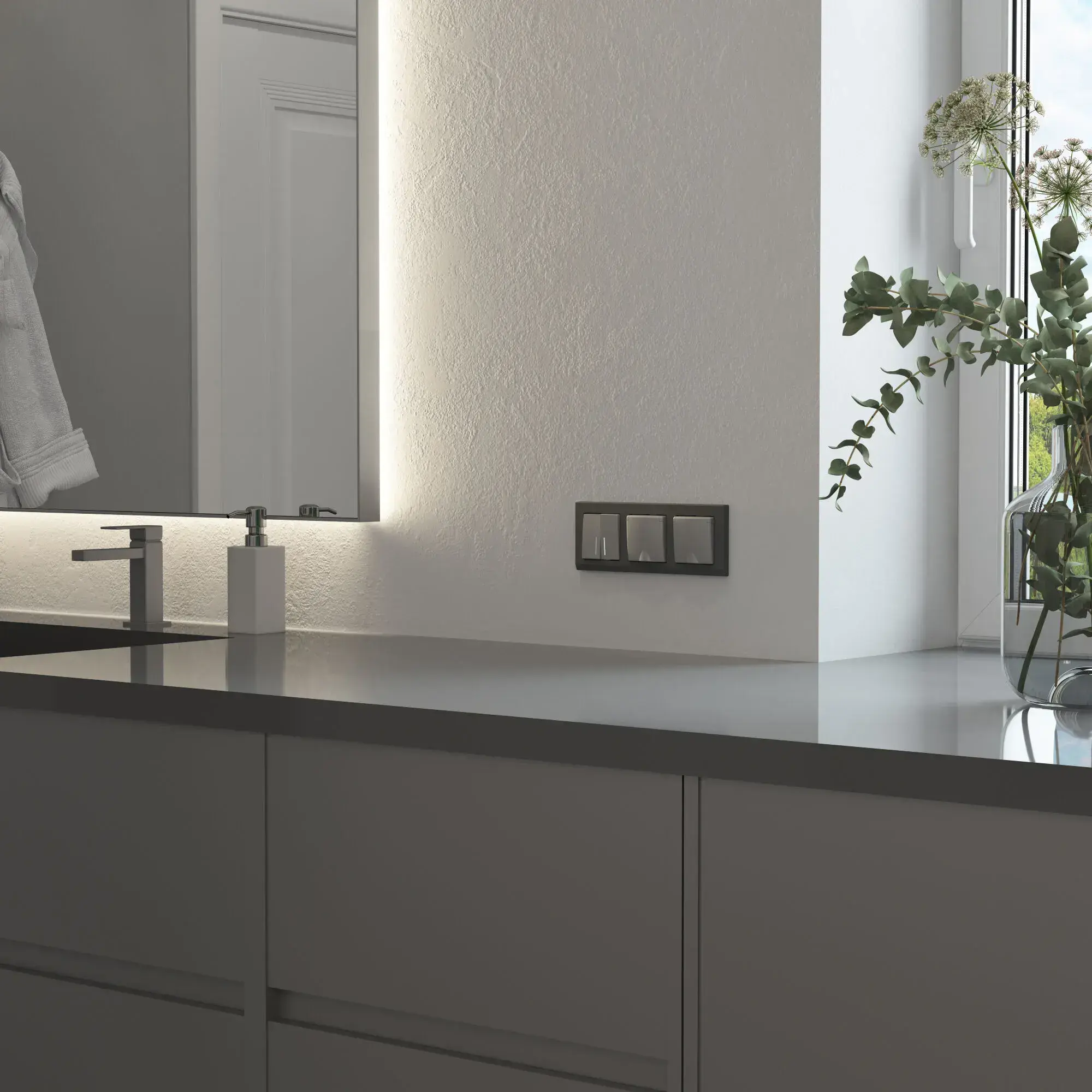Рамка на 3 поста Stark графит W0031864 Werkel – строгий стиль и современная функциональность для вашего интерьера Серия рамок Stark от Werkel воплощает в себе безупречное сочетание классических форм и современного минимализма. Рамки этой серии отличаются чистыми линиями, которые придают интерьеру стильный и завершенный вид, легко вписываясь в любое пространство. Особенности и преимущества рамок серии Stark: Универсальный дизайн: строгие прямые линии рамок гармонично дополняют как классические, так и современные интерьеры, делая их универсальным решением для любого помещения. Широкая совместимость: коллекция Stark совместима с любыми встраиваемыми механизмами Werkel, что обеспечивает гибкость использования в различных проектах. Прочность и безопасность: высококачественные материалы гарантируют долговечность и надежность эксплуатации даже в сложных условиях. Простота монтажа: быстрый и удобный процесс установки позволяет справиться с задачей даже начинающему электрику или домашнему мастеру. Подробная инструкция в комплекте упрощает процесс самостоятельной установки. Размеры однопостовой рамки Stark: Длина: 227 мм Ширина: 86 мм Высота: 11 мм Посадочный размер: 58 х 58 мм Почему выбирают рамки серии Stark Werkel? Эстетика и практичность: минималистичный дизайн и высококачественные материалы обеспечивают длительный срок службы и презентабельный внешний вид. Универсальность: подходят для любых помещений — от жилых комнат до офисов и общественных пространств. Надежность: рамки из поликарбоната гарантирует защиту от механических повреждений и пожаробезопасность. 👉 Заказывайте рамку W0031864 Stark и создайте современный и стильный интерьер уже сегодня!
