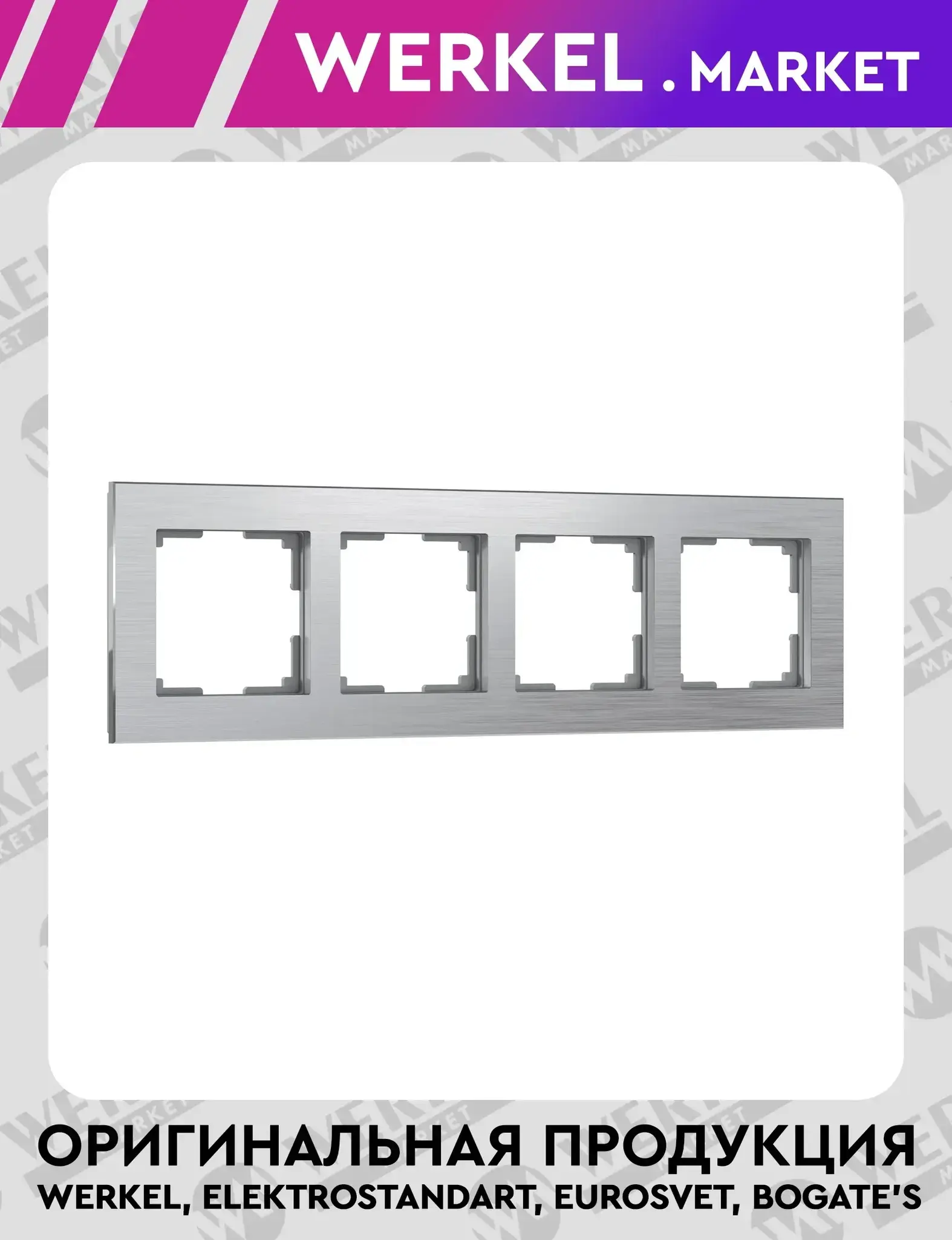 Рамка на 4 поста Aluminium цвет алюминий W0041706 Werkel – элегантность и надежность для вашего интерьера Завершите образ вашей электроустановки с помощью алюминиевой рамки серии Aluminium от Werkel, модель W0041706. Это стильное и функциональное решение, созданное для тех, кто ценит современный дизайн, качество материалов и продуманность каждой детали. Благодаря лаконичному внешнему виду и выдержанному оттенку алюминия, рамка органично вписывается в интерьеры в стиле минимализм, хай-тек, индустриальный или скандинавский. Изящные формы и четкие линии делают её универсальным элементом декора, который подчеркнет хороший вкус и внимание к деталям. Основные преимущества рамки серии Aluminium: Стильный дизайн — строгие линии и однотонная текстура придают изделию солидный и современный вид. Высококачественный материал — изготовлена из прочного алюминиевого сплава, устойчивого к коррозии, механическим повреждениям и изменению цвета со временем. Универсальная совместимость — подходит ко всем стандартным механизмам Werkel с посадочным размером 58 × 58 мм , что позволяет создать целостный и гармоничный ансамбль электроустановочных изделий. Простота монтажа — конструкция разработана так, чтобы установка была быстрой и удобной как для профессионалов, так и для самостоятельного ремонта. Безопасность и экологичность — соответствует высоким стандартам пожаробезопасности и не содержит вредных веществ, что подтверждает заботу о здоровье и окружающей среде. Технические характеристики: Бренд: Werkel Тип изделия: Рамка четырехпостовая Серия: Aluminium Цвет: Алюминий Материал: Алюминиевый сплав Количество постов: 4 Посадочный размер: 58 × 58 мм Габариты (Д × Ш × В): 303 × 90 × 11 мм Степень защиты: IP20 Рамка четырехместная Aluminium W0041706 — это идеальное сочетание стиля, долговечности и функциональности, которое дополнит любое пространство в современном ключе. Выбирайте качественные решения от Werkel и создавайте интерьер, в котором каждая деталь говорит о вашем стиле!