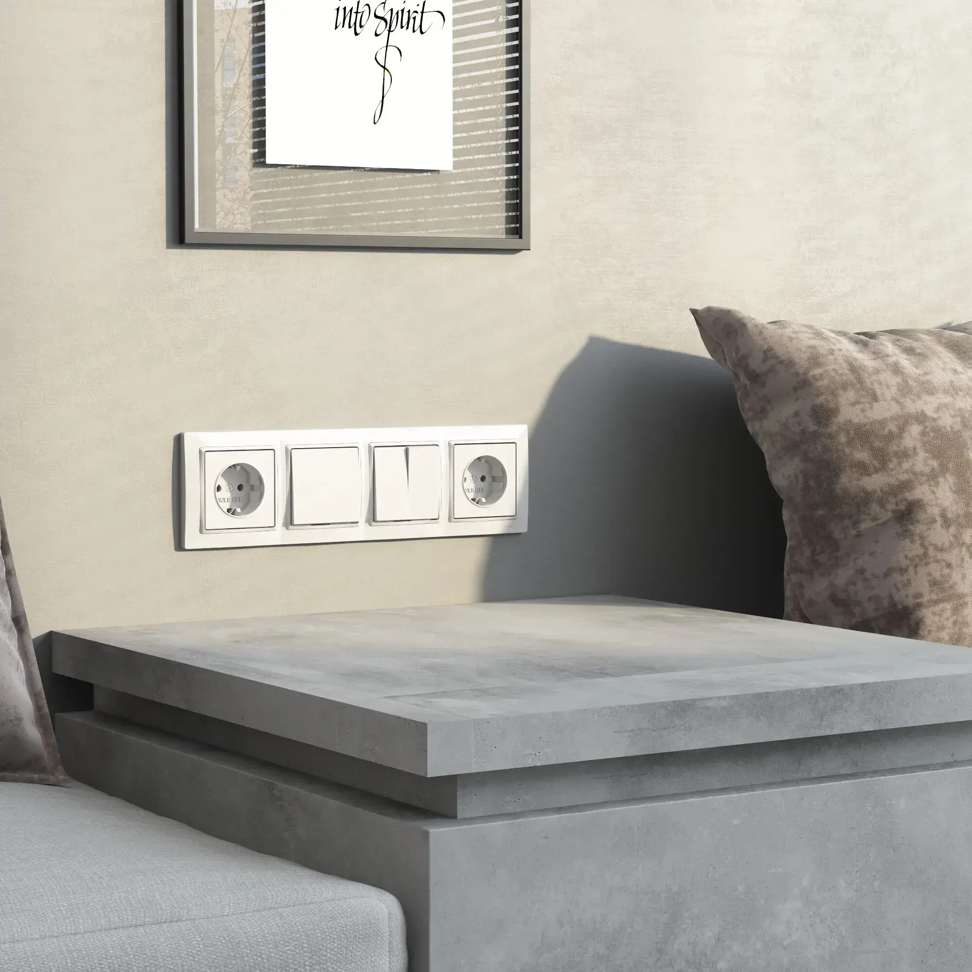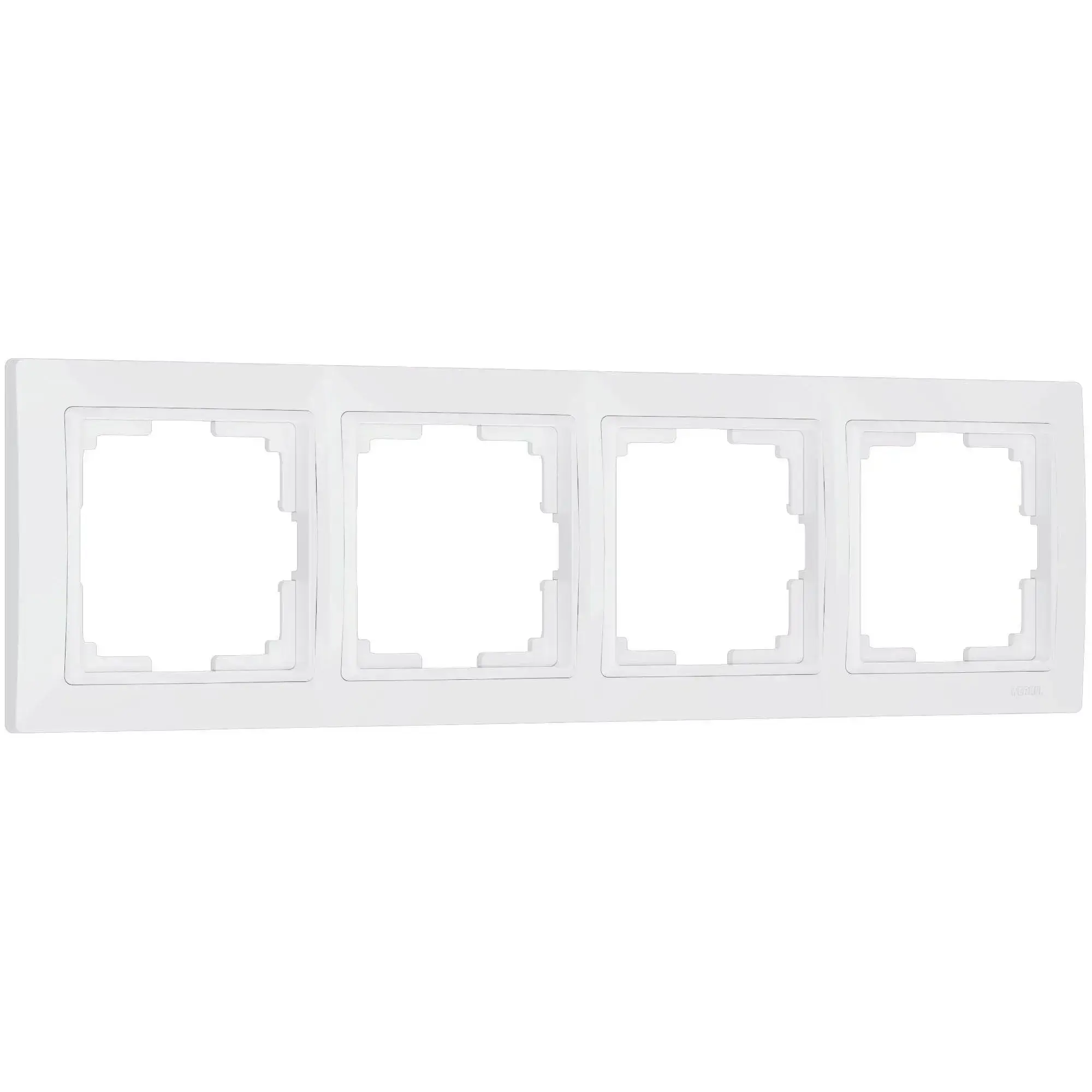 Рамка четырехместная Snabb Basic белая обтекаемой эргономичной формы выполнена из высококачественного поликарбоната с глянцевым эффектом, что придает ей особый шарм и делает ее украшением любого помещения. Декоративная вставка добавляет нотку элегантности и позволяет гармонично вписаться в любой дизайн. Не упустите возможность добавить этой рамке индивидуальности и подчеркнуть свой неповторимый вкус. Размеры рамки: Длина - 299 мм; Ширина - 11 мм; Высота - 86 мм.