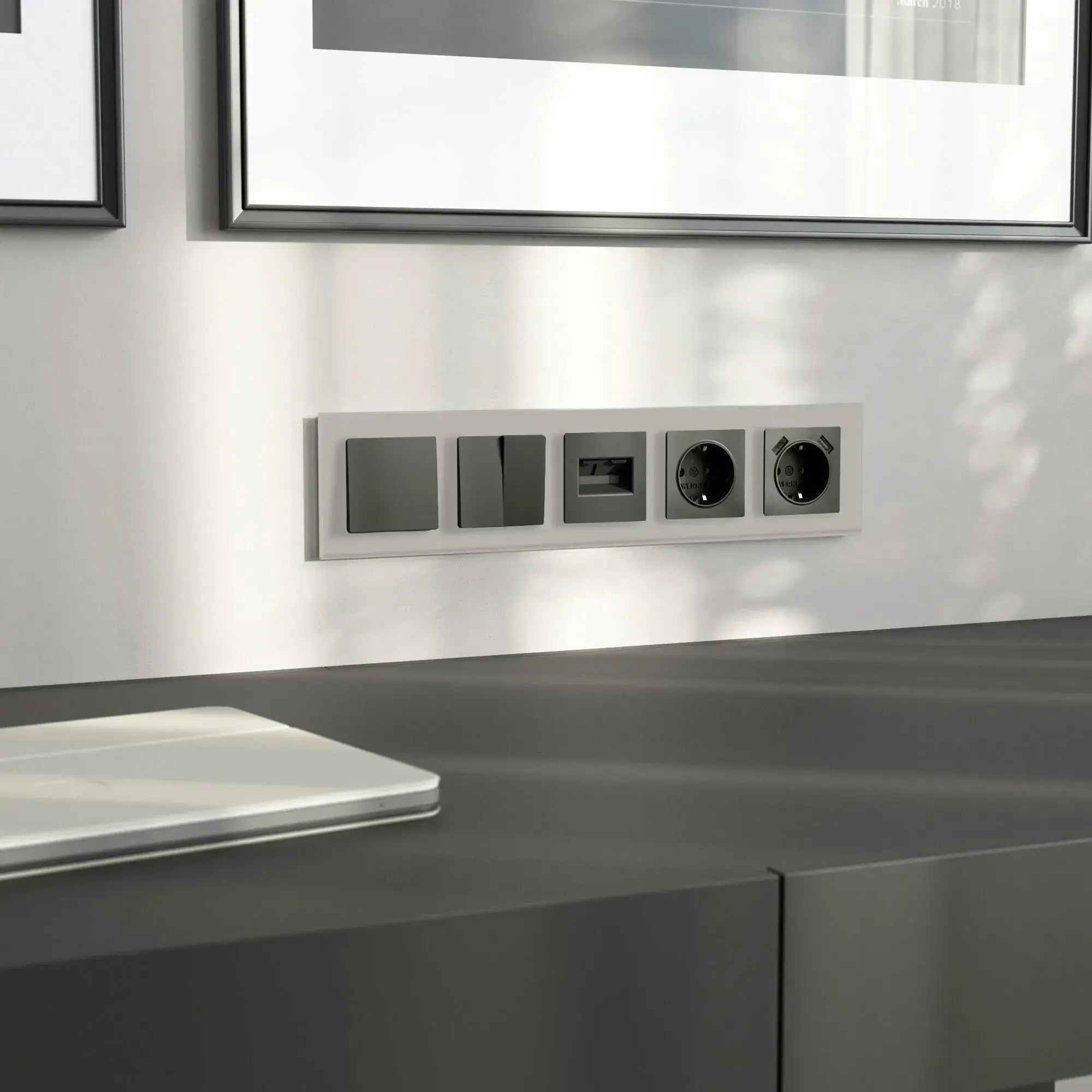 Рамка на 5 постов Senso дымчатый W0053117 Werkel – стиль, комфорт и инновации в вашем интерьере Добавьте в ваш дом или офис элемент современного дизайна с рамкой серии Senso от Werkel, модель W0053117. Это сочетание закаленного стекла и уникальной технологии soft-touch создаёт неповторимое тактильное ощущение — мягкое прикосновение и гладкая поверхность без следов пальцев. Дымчатый цвет рамки подчёркивает её чистоту и лаконичность, а тщательно обработанные грани и прямая фаска создают эффект играющего света, делая изделие не просто функциональным элементом, а настоящим акцентом интерьера. Основные преимущества рамки серии Senso: Уникальная технология soft-touch — обеспечивает приятные тактильные ощущения и предотвращает появление отпечатков пальцев. Высококачественный материал — изготовлена из прочного закаленного стекла, устойчивого к царапинам, ударам и изменению цвета со временем. Стильный дизайн — Дымчатый цвет и продуманная геометрия рамки идеально вписываются в современные интерьеры: минимализм, скандинавский стиль, хай-тек и другие. Универсальная совместимость — подходит ко всем стандартным механизмам Werkel с посадочным размером 58 × 58 мм , что позволяет легко создать единый ансамбль электроустановочных изделий. Простота ухода и установки — легко очищается и быстро монтируется, что делает её удобной как для ремонта, так и для повседневного использования. Технические характеристики: Бренд: Werkel Тип изделия: Рамка пятипостовая Серия: Senso Цвет: Дымчатый Материал: Закалённое стекло с покрытием soft-touch Количество постов: 5 Посадочный размер: 58 × 58 мм Габариты (Д × Ш × В): 308 × 95 × 11 мм Рамка пятиместная серии Senso W0053117 — это выбор тех, кто ценит современный дизайн, качество и комфорт в деталях . Создайте интерьер, где каждая деталь радует глаз и дарит удовольствие от использования!