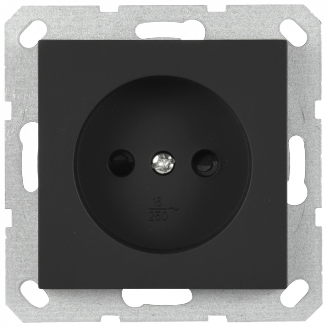 Розетка без заземления с защитными шторками 16A 250V~ 2P, цвет черный матовый (soft touch)
