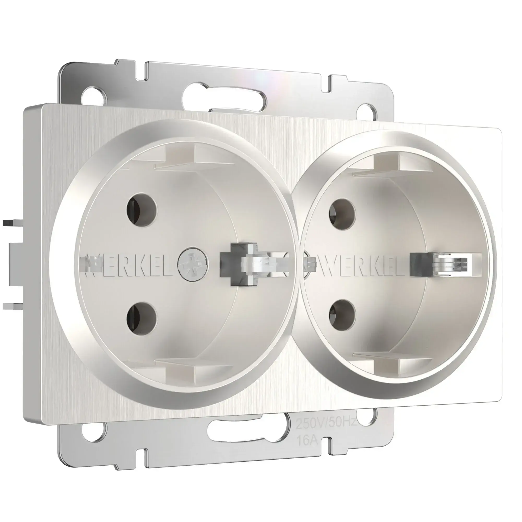Двойная розетка с заземлением перламутровый рифленый W1172013 - напряжением 220 В и силой тока 16 А является неотъемлемой частью любого помещения и служит для подключения разнообразной техники к электрической сети. Данные розетки применяются как в жилых квартирах и частных домах, так и в коммерческих зданиях, устанавливаясь в наиболее подходящих для этого местах. Основные части механизма розетки изготавливаются из нержавеющей стали и монтируются в монтажную коробку с фиксацией посредством винтов и распорных лапок. Подключение кабелей сечением от 0.75 мм² до 2.5 мм², осуществляется через винтовую клемму, что делает процесс установки очень простым и удобным. Контакты из фосфористой бронзы и серебра, которые могут выдержать значительные нагрузки, обладают долговечностью и рассчитаны на 40 000 циклов эксплуатации. Лицевая панель изготовлена из качественного поликарбоната, который устойчив к высоким температурам. Двойная розетка встраиваемой серии Werkel подходит ко всем рамкам коллекции Werkel, отличается простотой использования и обеспечивает стабильный контакт.