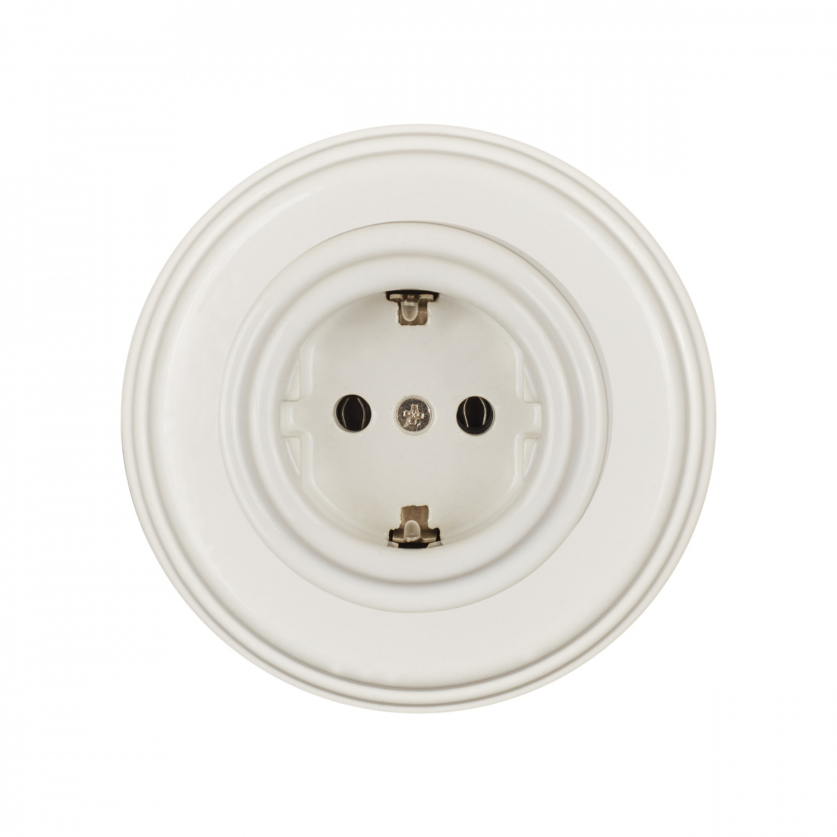 Конструкция розетки имеет дополнительный заземляющий контакт, что позволяет применять ее при монтаже скрытой однофазной трехжильной (с заземлением) электропроводки.