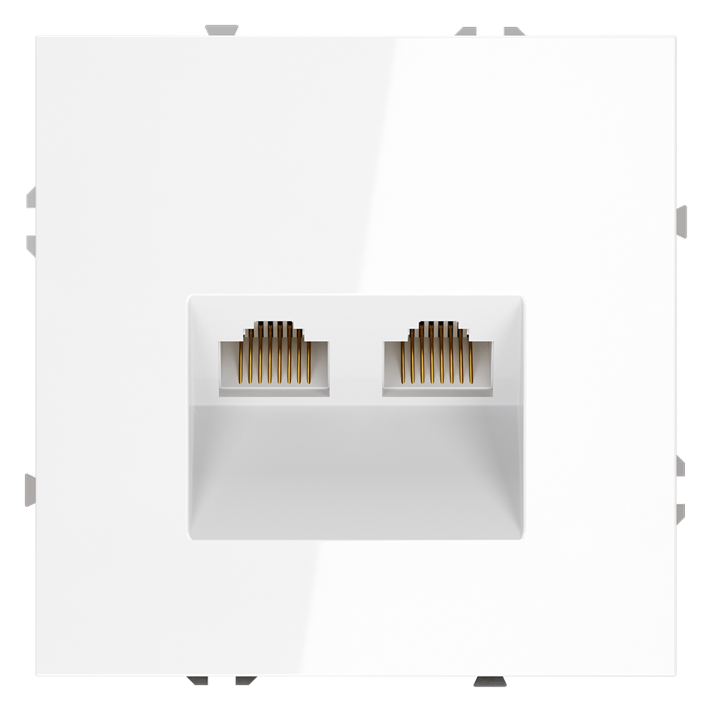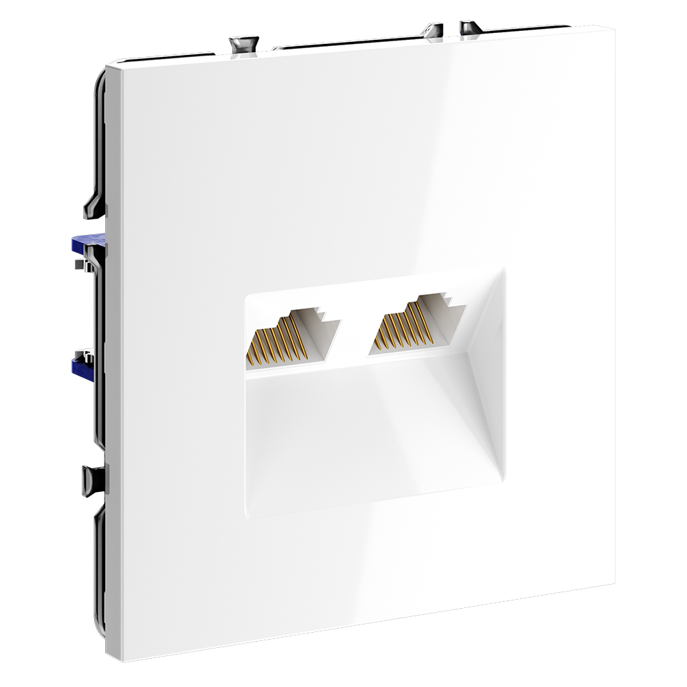 Розетка компьютерная встраиваемая VOLTUM S70 двойная RJ45+RJ45 кат.6, (белый глянцевый)
