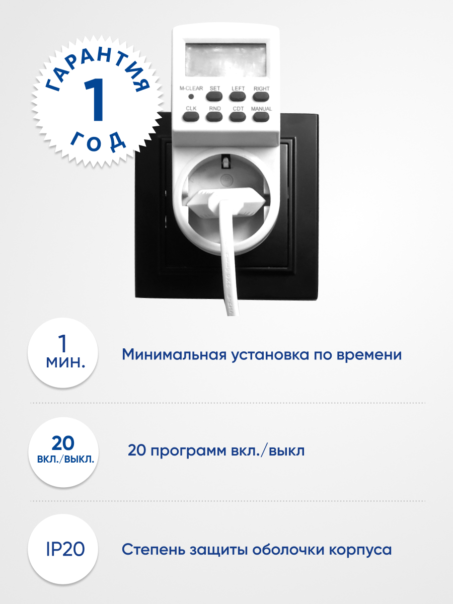 - 20 программ «ON/OFF» с шагом в 1 минуту.