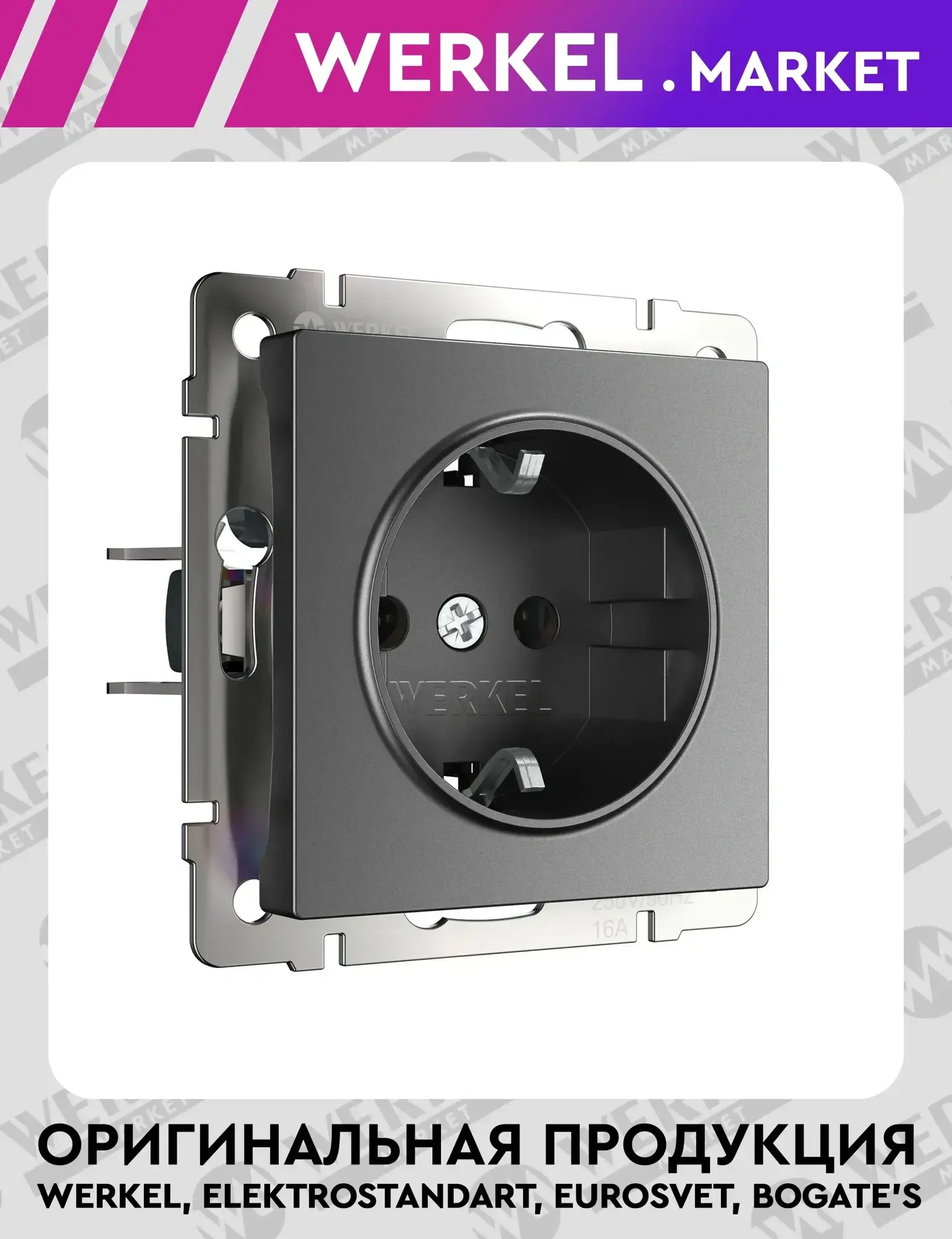 Розетка с заземлением и шторками 16А графит матовый W1171164 — надёжное и безопасное решение для вашего дома. Она оснащена защитными шторками, которые предотвращают случайное попадание посторонних предметов внутрь розетки и обеспечивают безопасность детей. Благодаря наличию заземления, розетка также гарантирует защиту от поражения электрическим током в случае утечки тока. Механизм розетки с заземлением с суппортом из нержавеющей стали монтируется в подрозетник и надёжно закрепляется с помощью винтов и распорных лапок. Розетка оснащена удобным подключением проводов сечением от 0,75 мм² до 2,5 мм², которое осуществляется через винтовую клемму. Контакты из фосфористой бронзы и серебра выдерживают большие нагрузки и имеют длительный срок службы — 40 000 циклов. Лицевая панель изготовлена из высококачественного поликарбоната, устойчивого к высоким температурам. Розетка с заземлением совместима со всеми рамками из коллекции Werkel, удобна в использовании и обеспечивает надёжный контакт.