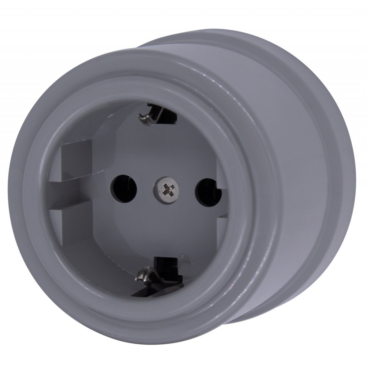 Конструкция розетки имеет дополнительный заземляющий контакт, что позволяет применять ее при монтаже скрытой однофазной трехжильной (с заземлением) электропроводки.