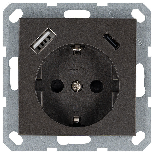 G5501USB-25Z/Розетка SCHUKO© с USB A+C с защитными шторками 16A 250V~ 2P+T USB 25W, цвет Мокко
