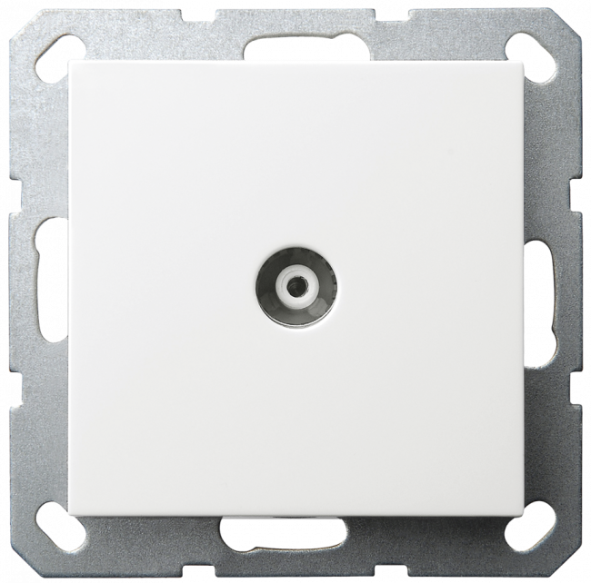 Розетка TV Φ9.5mm проходная с накладкой, цвет белый глянцевый