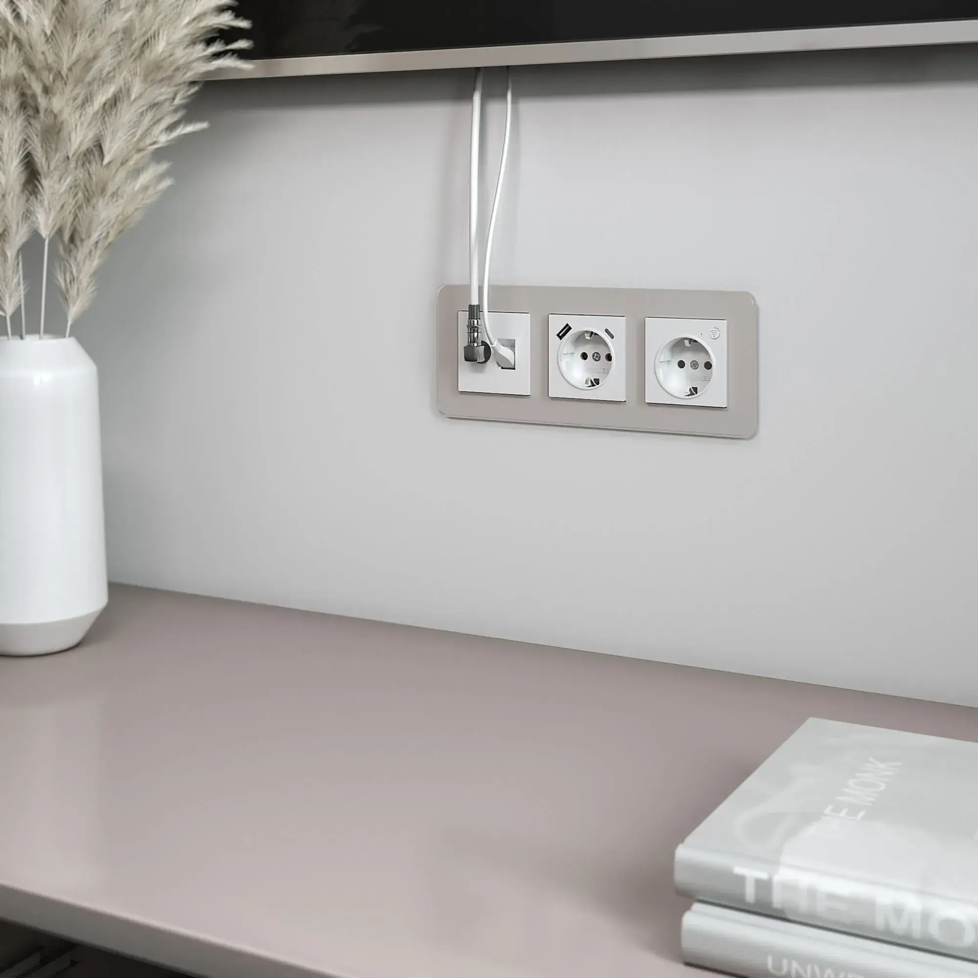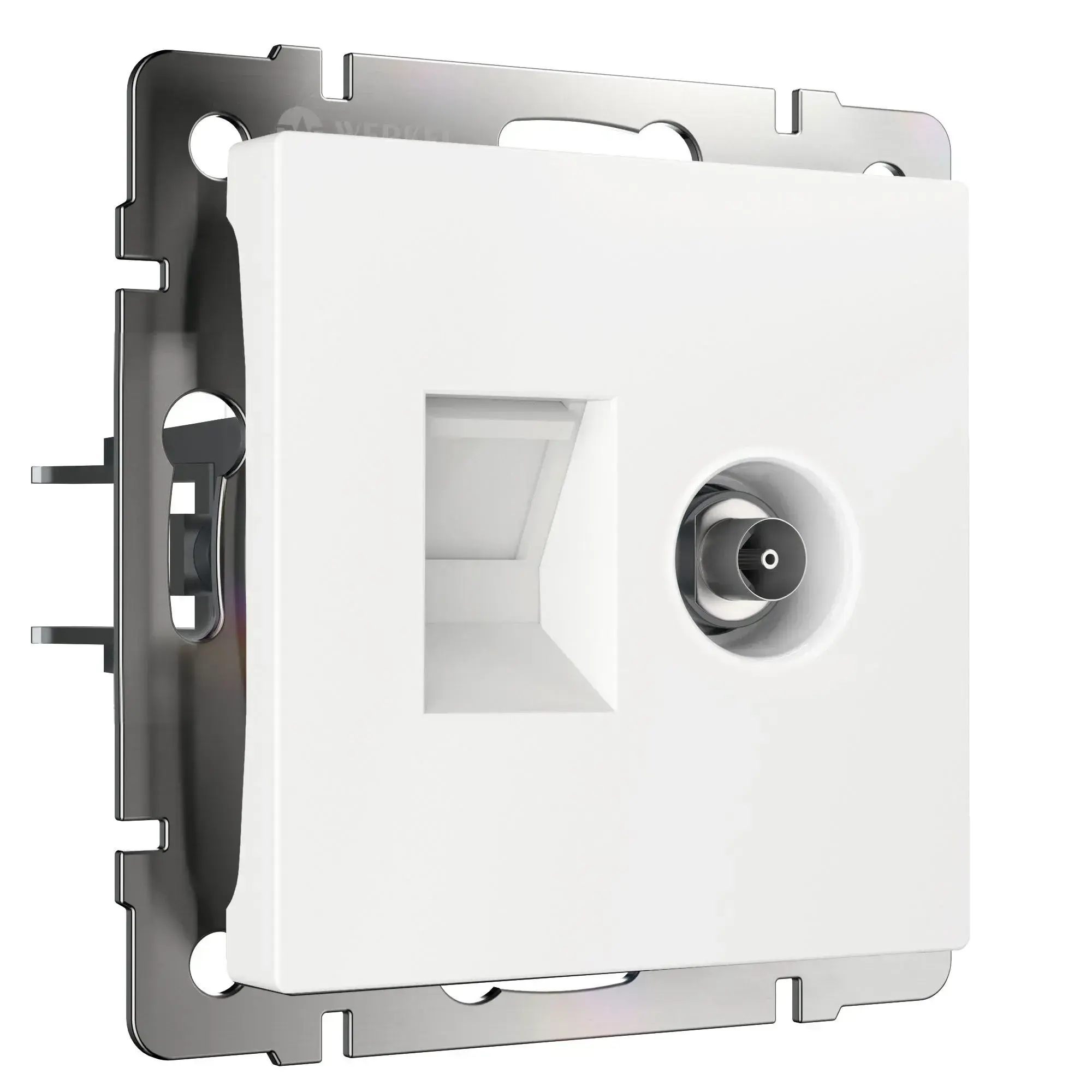 Розетка ТВ + Ethernet RJ-45 6 cat - универсальная розетка объединяет в себе разъемы для подключения к телевизионной сети и интернету через кабель RJ-45. Она идеально подойдет для современных телевизоров, поддерживающих оба типа соединений, а также станет отличным решением для помещений с ограниченными возможностями по размещению розеток. Преимущества: Удобство подключения: ТВ-розетка обеспечивает надежное соединение кабелей, гарантируя стабильную передачу сигнала. Высокая скорость интернета: Интернет-розетка RJ-45 6 cat. поддерживает скорость передачи данных до 10 Гбит/сек, соответствуя стандартам категории 6А. Компактность: Объединение двух функций в одном устройстве экономит пространство и упрощает монтаж. Розетка ТВ + Ethernet RJ-45 6 cat. обеспечит вам надежность, удобство и высокую производительность в передаче данных.