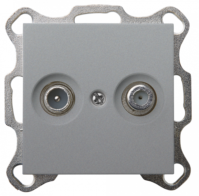 Розетка TV+FM Φ9.5mm проходная с накладкой, цвет Алюминий