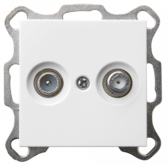 G6205W/Розетка TV+FM Φ9.5mm проходная с накладкой, цвет белый глянцевый