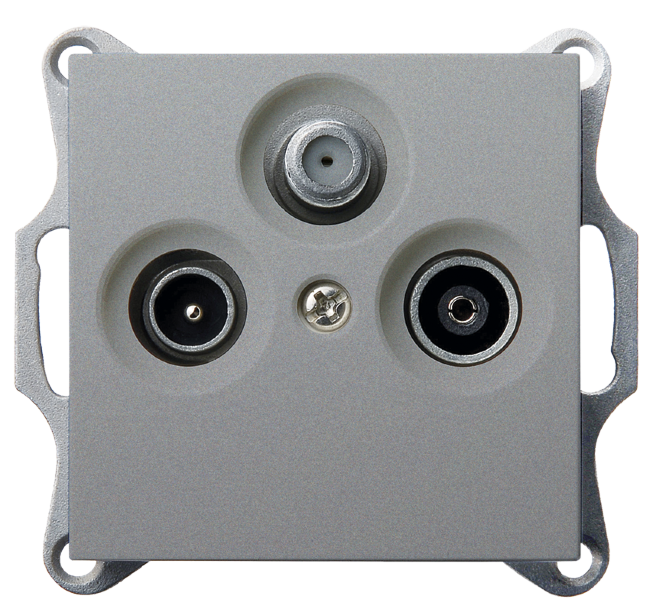 Розетка TV+FM+SAT Φ9.5mm проходная с накладкой, цвет Алюминий