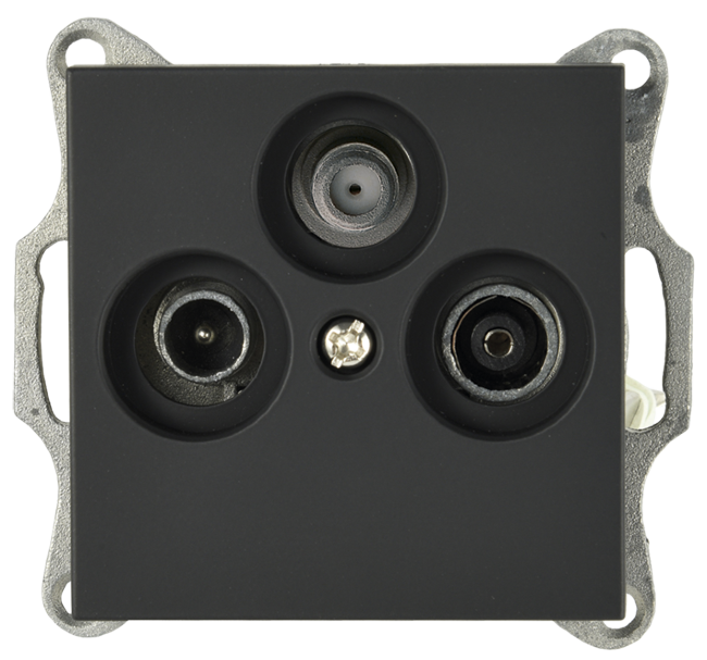 Розетка TV+FM+SAT Φ9.5mm проходная с накладкой, цвет черный матовый (soft touch)