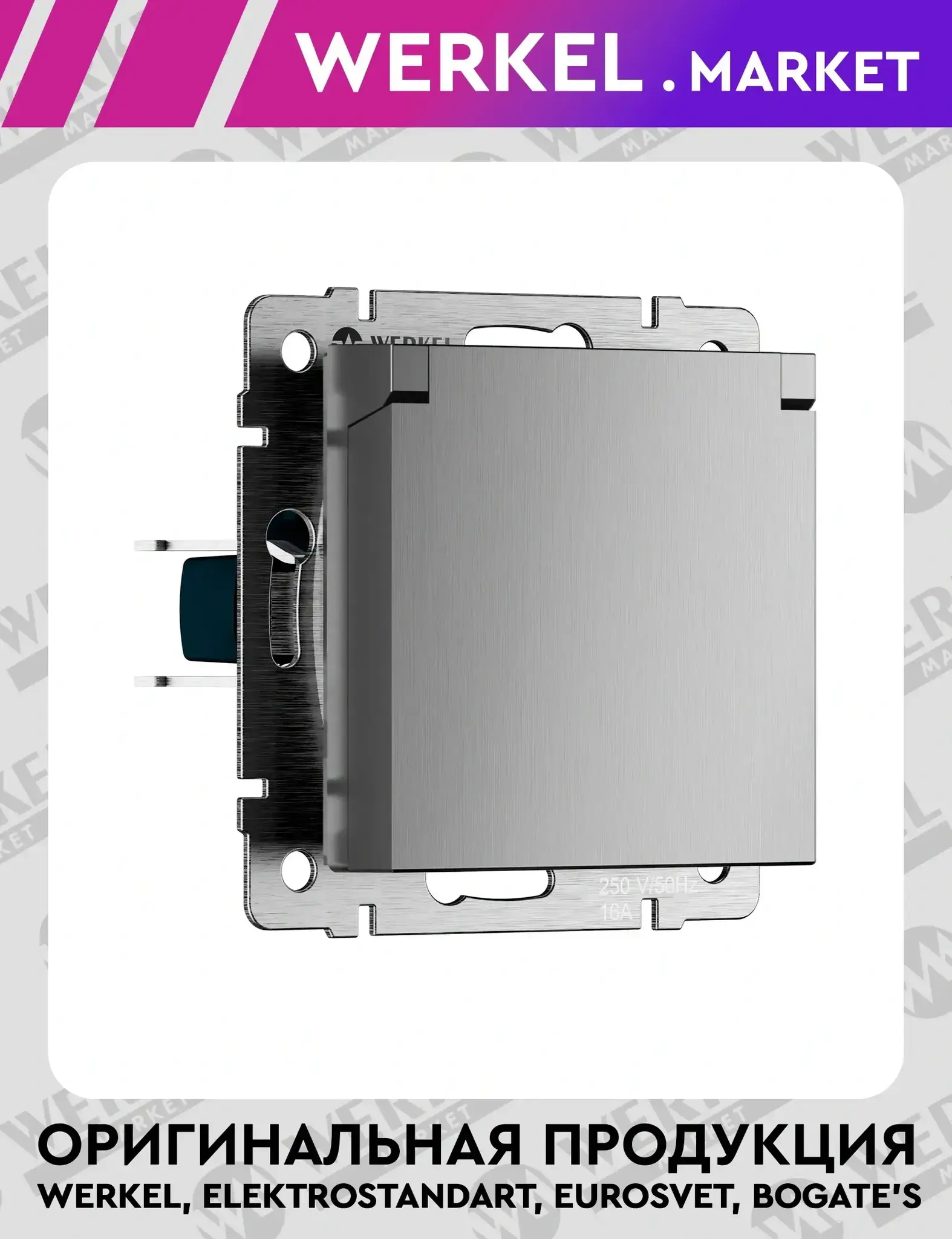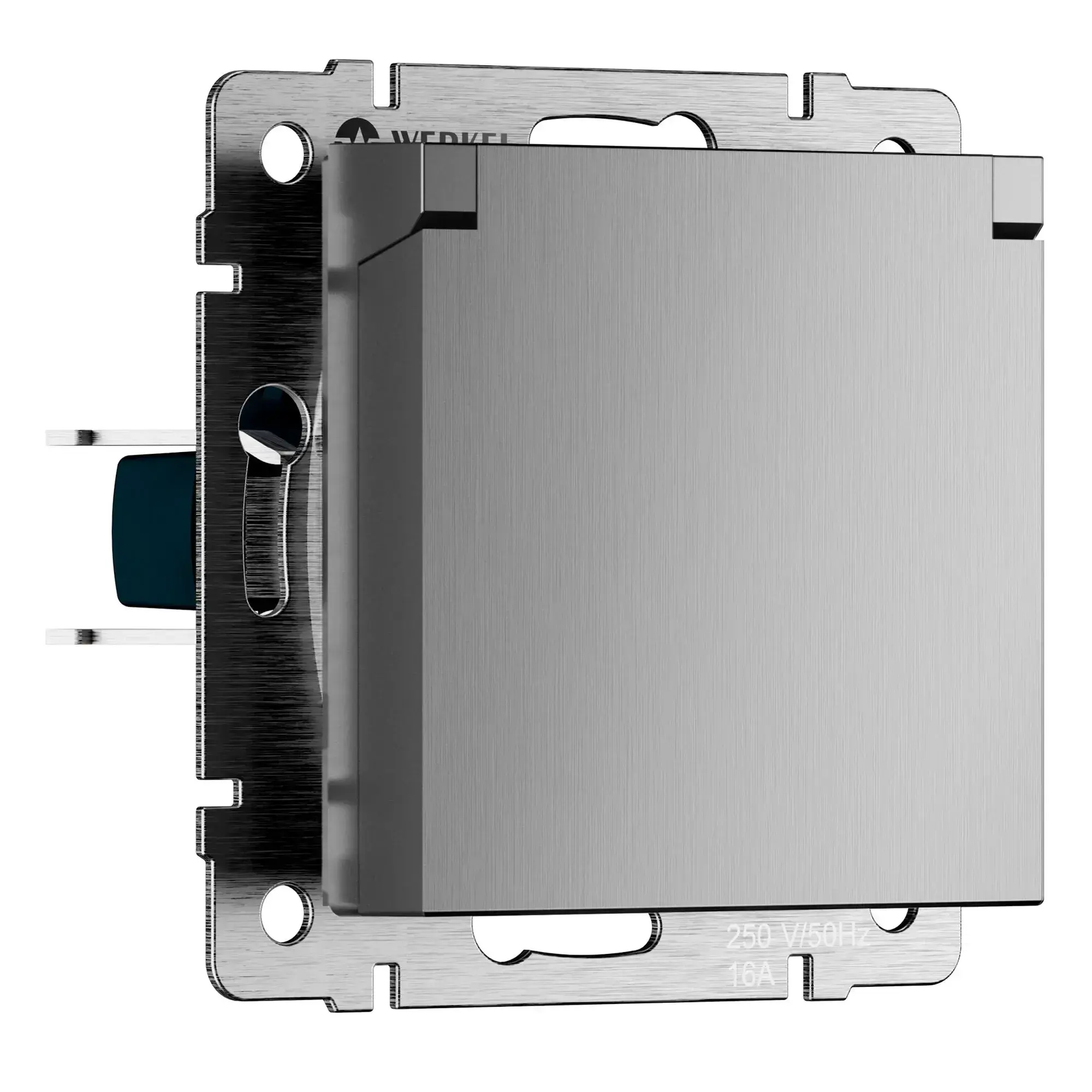 Розетка с защитной крышкой и шторками с заземлением влагозащищенная IP44 рассчитанная на напряжение 220 В и силу тока 16 А является важным компонентом любого помещения. Она служит для подключения разнообразной техники к электрической сети и может использоваться как в жилых, так и в коммерческих зданиях. Данное электроустановочное изделие состоит из механизма, закрепленного в подрозетнике с помощью винтов и распорных лапок. Механизм изготовлен из нержавеющей стали, что гарантирует его прочность и долговечность. Лицевая панель выполнена из поликарбоната, который устойчив к высоким температурам и механическим воздействиям. Защитные шторки и крышка обеспечивают безопасность от случайного контакта с электричеством, особенно актуальную в присутствии детей.  Розетка с защитной крышкой и шторками встраиваемой серии Werkel совместима со всеми рамками из коллекции Werkel, удобна в использовании и обеспечивает надёжный контакт.