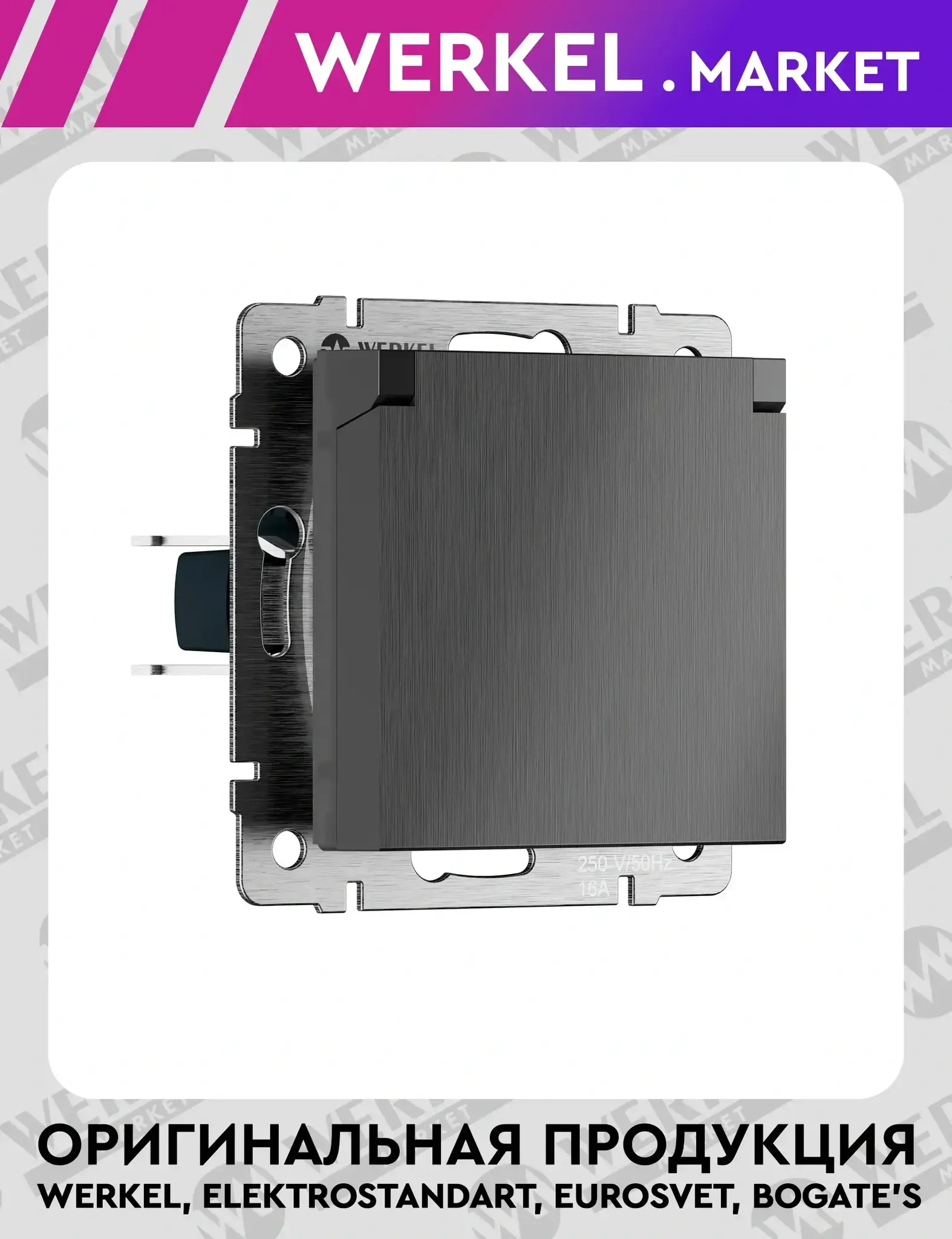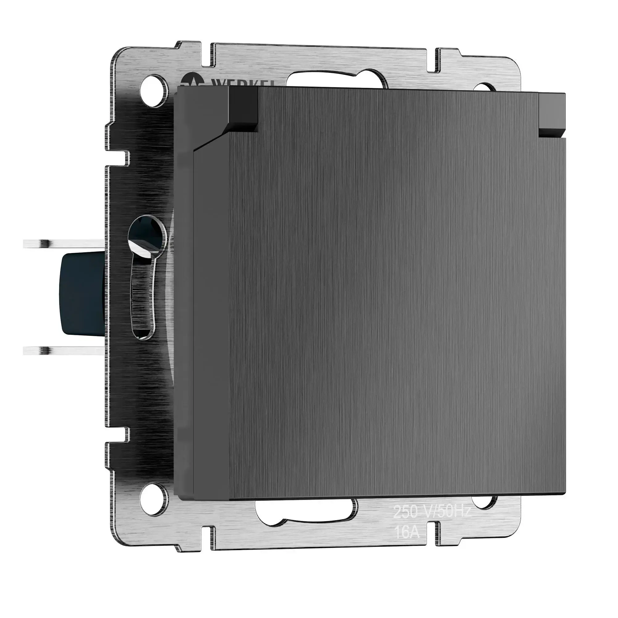 Розетка с защитной крышкой и шторками с заземлением влагозащищенная IP44 рассчитанная на напряжение 220 В и силу тока 16 А является важным компонентом любого помещения. Она служит для подключения разнообразной техники к электрической сети и может использоваться как в жилых, так и в коммерческих зданиях. Данное электроустановочное изделие состоит из механизма, закрепленного в подрозетнике с помощью винтов и распорных лапок. Механизм изготовлен из нержавеющей стали, что гарантирует его прочность и долговечность. Лицевая панель выполнена из поликарбоната, который устойчив к высоким температурам и механическим воздействиям. Защитные шторки и крышка обеспечивают безопасность от случайного контакта с электричеством, особенно актуальную в присутствии детей. Розетка с защитной крышкой и шторками встраиваемой серии Werkel совместима со всеми рамками из коллекции Werkel, удобна в использовании и обеспечивает надёжный контакт.