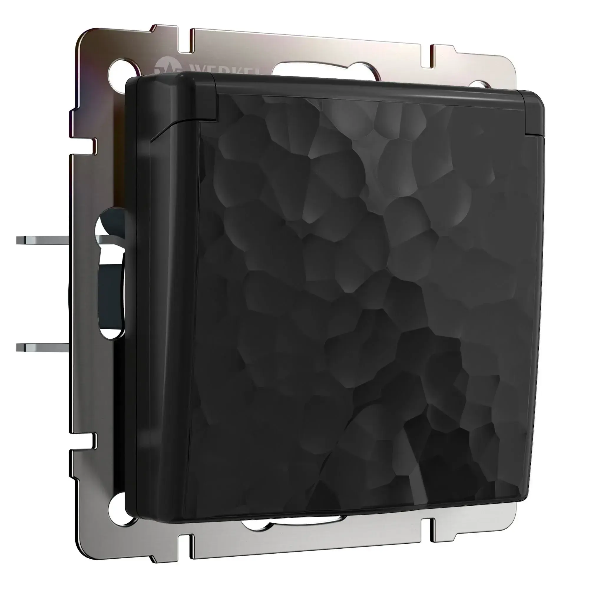 Розетка влагозащищенный с заземлением с крышкой и шторками Hammer (черный) W1271208