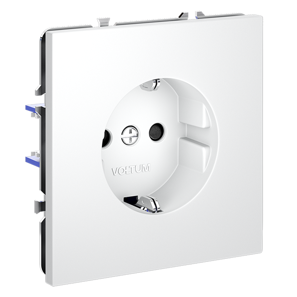Розетка встраиваемая VOLTUM S70 с заземлением и защитными шторками, 16А, (белый матовый)