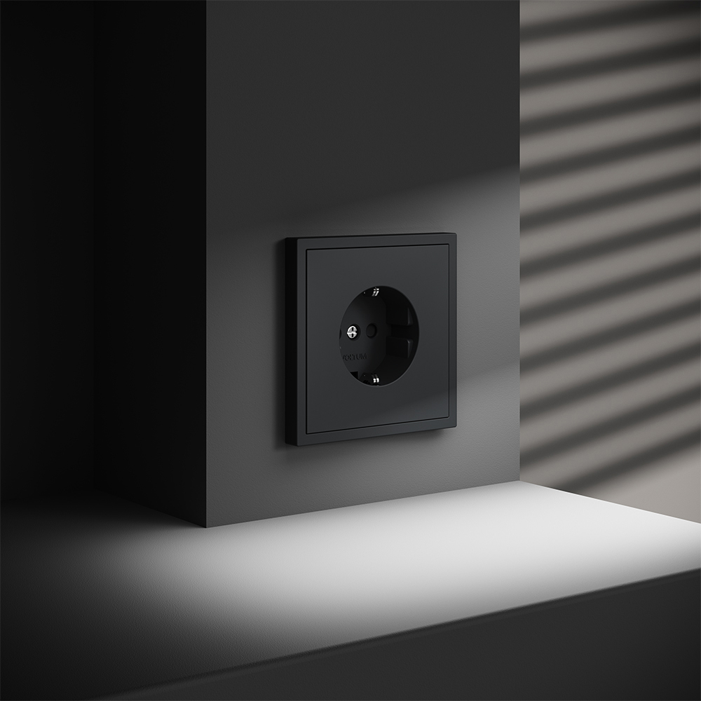 Розетка встраиваемая VOLTUM S70 с заземлением и защитными шторками, 16А, (графит)
