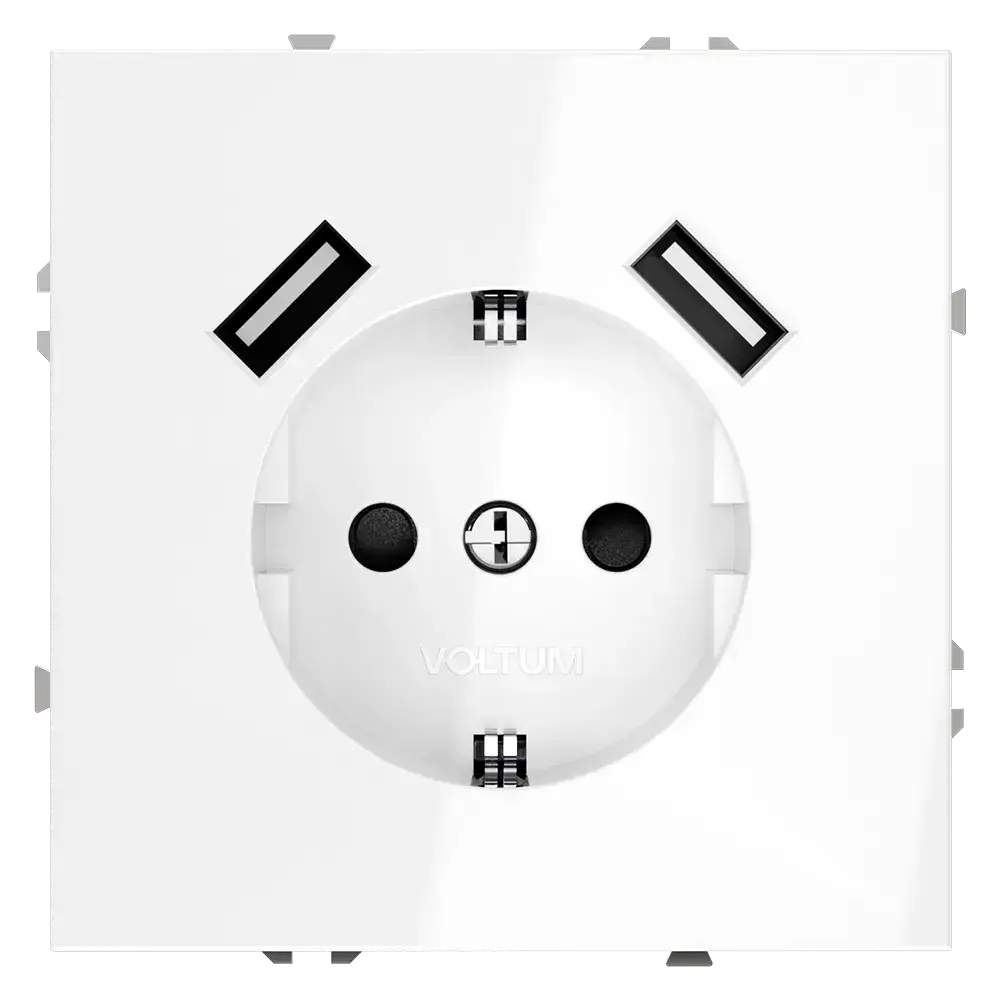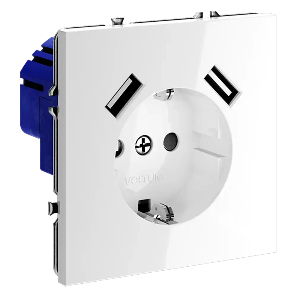 Розетка встраиваемая VOLTUM S70 с заземлением и защитными шторками, 16А, с USB, A+A, (белый глянцевы