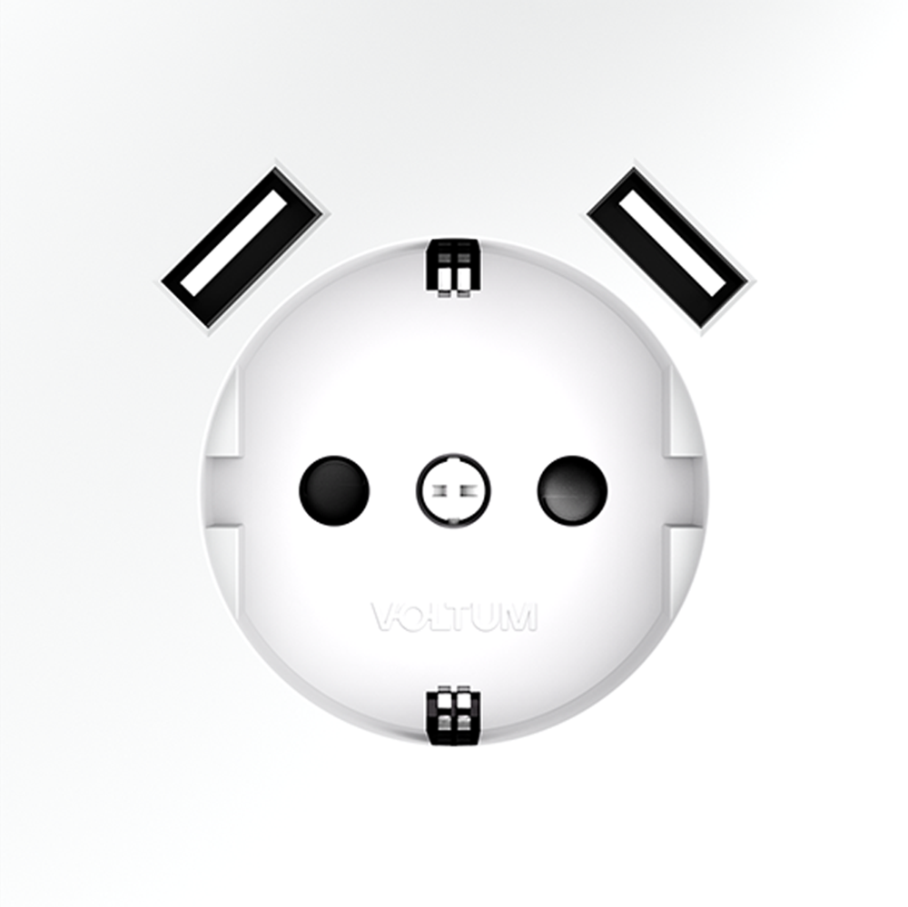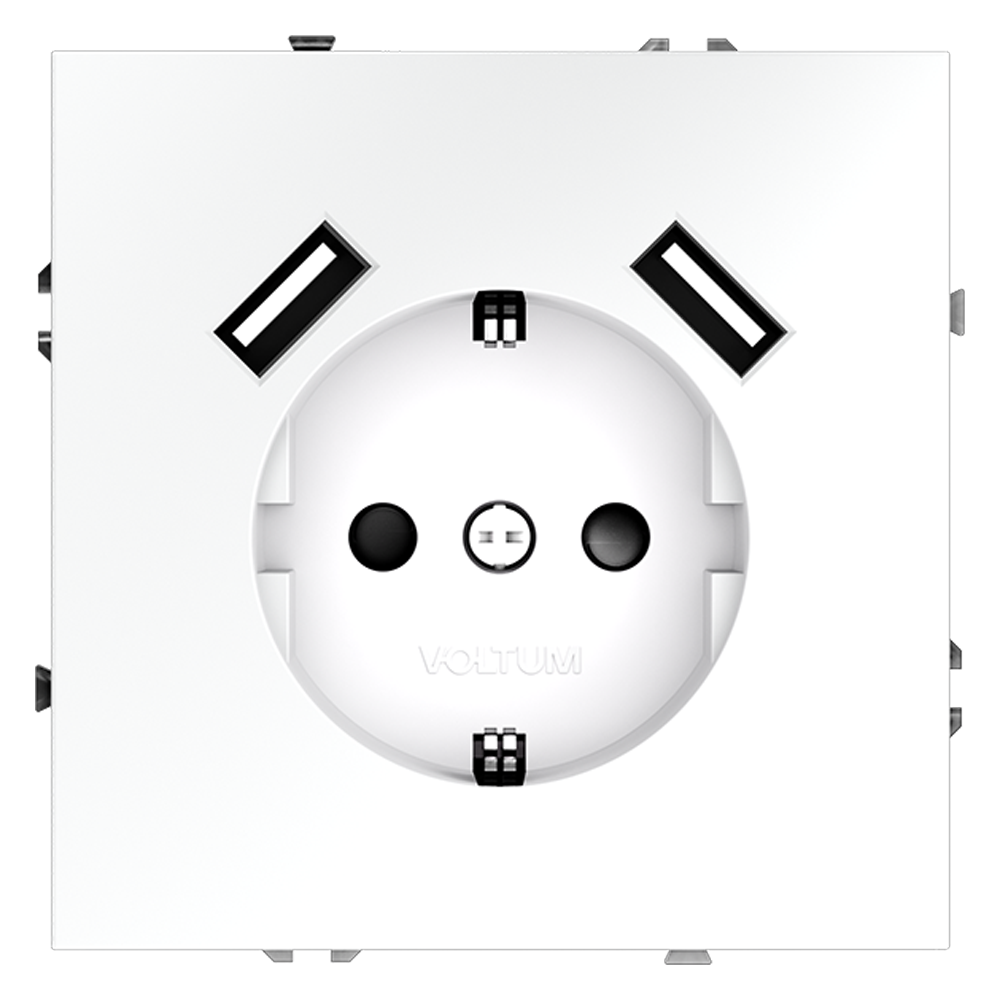 Розетка встраиваемая VOLTUM S70 с заземлением и защитными шторками, 16А, с USB, A+A, (белый матовый)