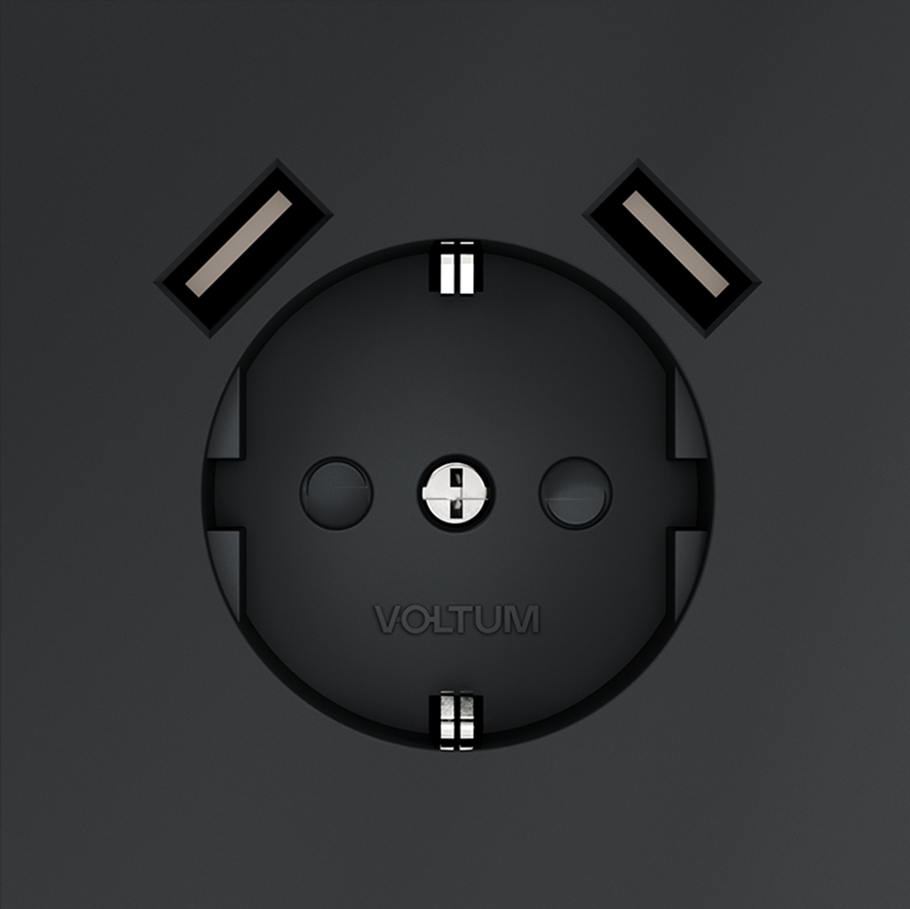 Розетка встраиваемая VOLTUM S70 с заземлением и защитными шторками, 16А, с USB, A+A, (графит)