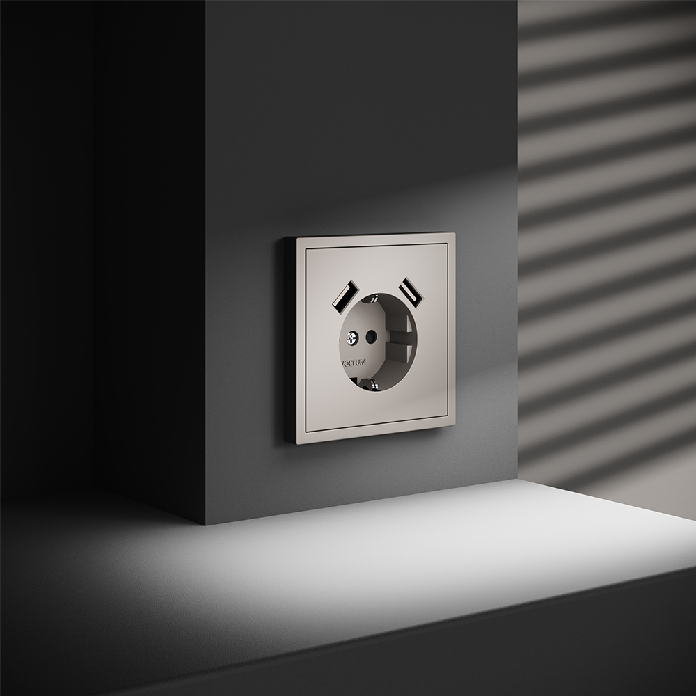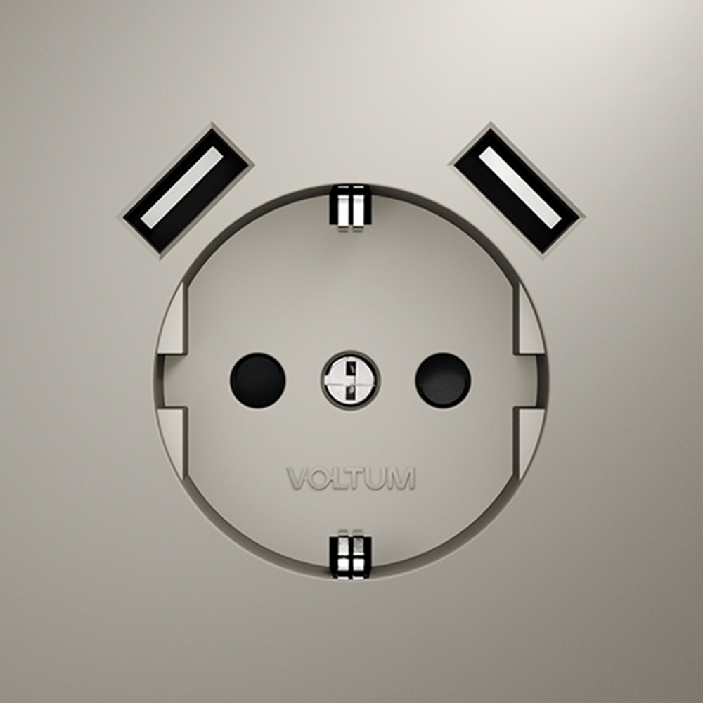 Розетка встраиваемая VOLTUM S70 с заземлением и защитными шторками, 16А, с USB, A+A, (кашемир)