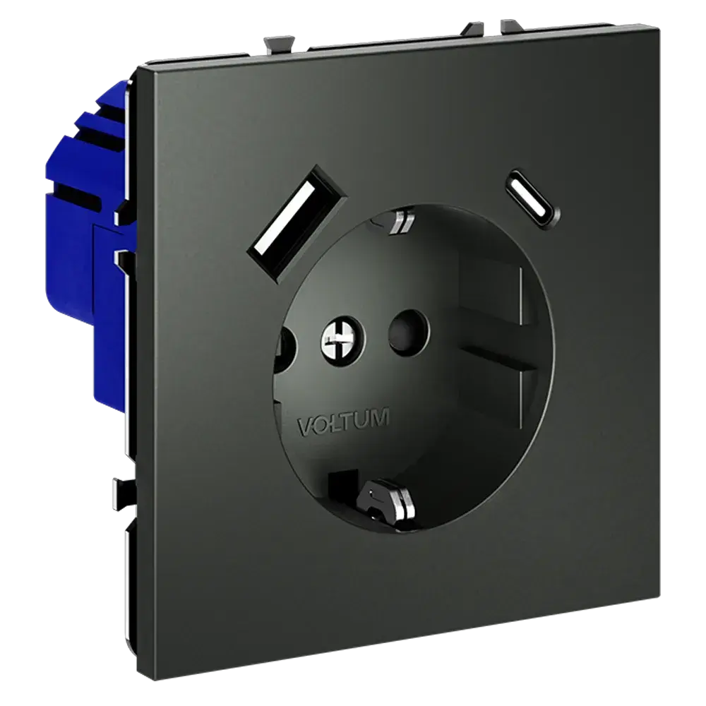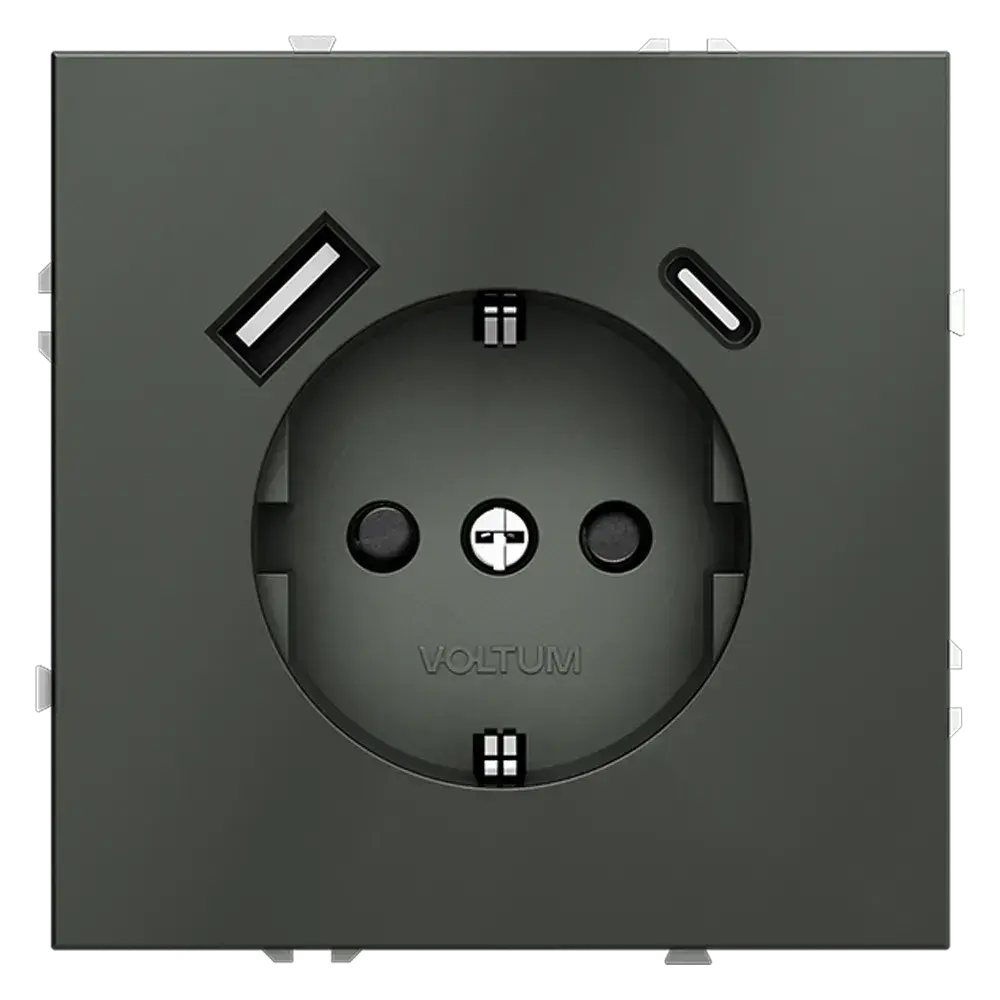 Розетка встраиваемая VOLTUM S70 с заземлением и защитными шторками, 16А, с USB, A+С, (титан)