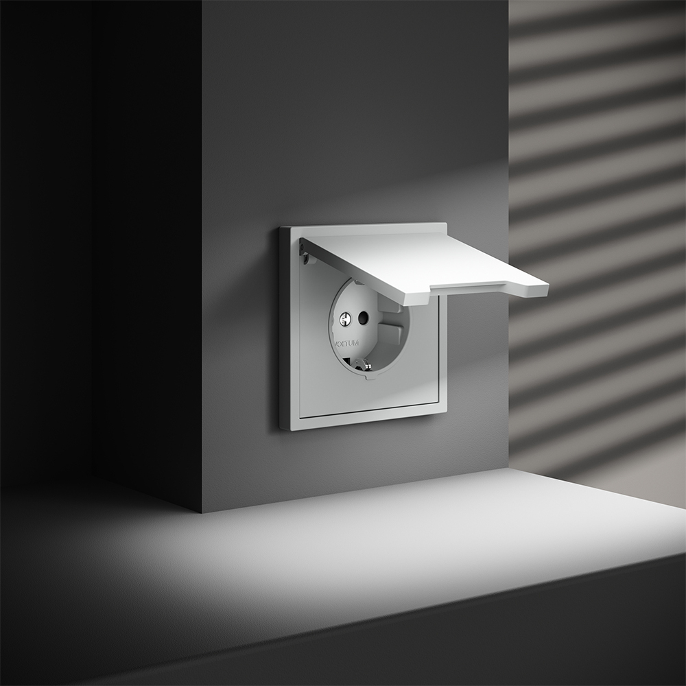 Розетка встраиваемая VOLTUM S70 с заземлением, защитными шторками и крышкой 16А, (белый матовый)