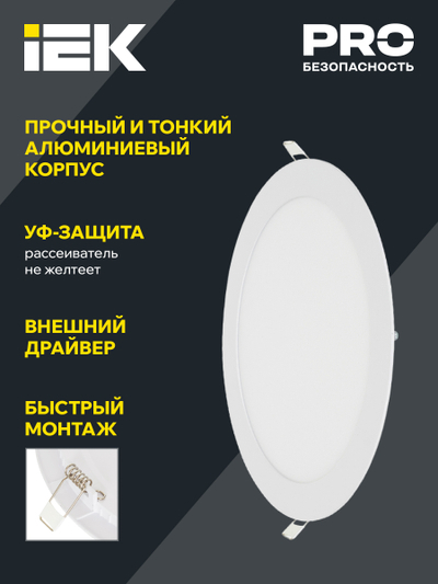 Светильник ДВО 1607 белый, круг LED 18Вт 4000 IP20 IEK
