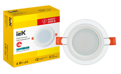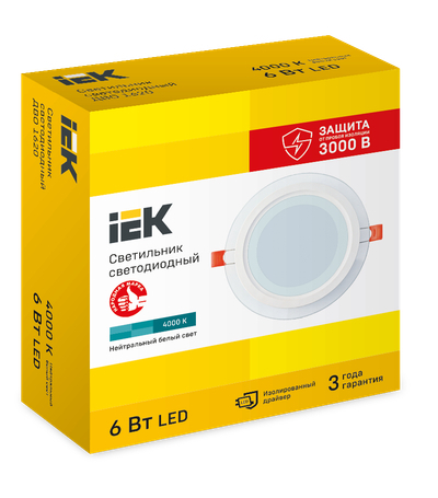Светильник светодиодный ДВО 1620 со стеклом круг 6Вт 4000К IP20 IEK