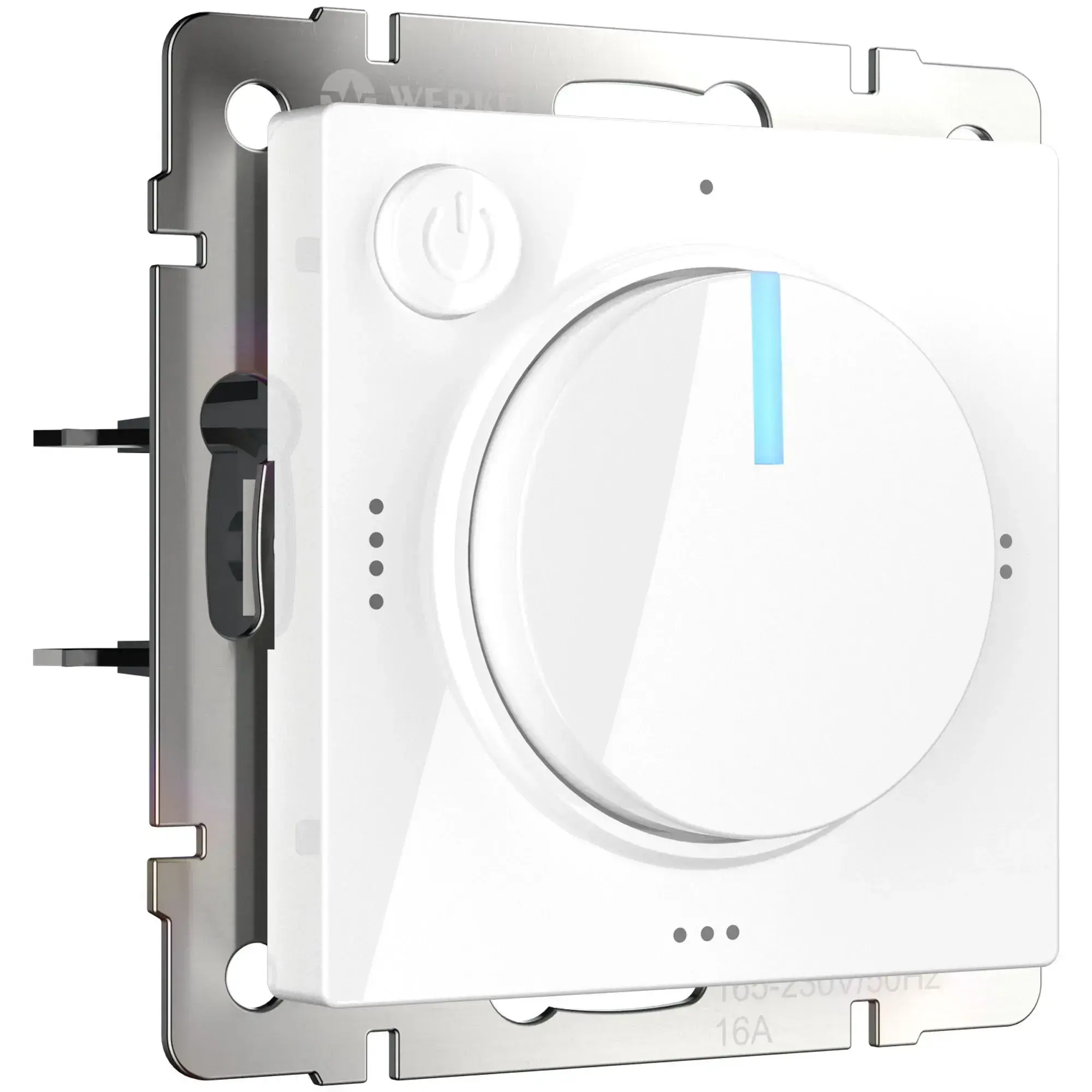 Терморегулятор электромеханический для теплого пола белый W1151101 устройство разработано для регулирования температуры напольного покрытия в комнатах. Оно подходит ко всем видам теплых полов и рассчитано на максимальную мощность до 3500 Вт. Этот терморегулятор может работать с различными рамками Werkel и оборудован светодиодной индикацией, отображающей текущий режим работы. Максимально допустимая температура нагрева достигает 50 градусов Цельсия. Красный светодиод показывает процесс нагревания, а включение синей подсветки свидетельствует о достижении установленной температуры.
