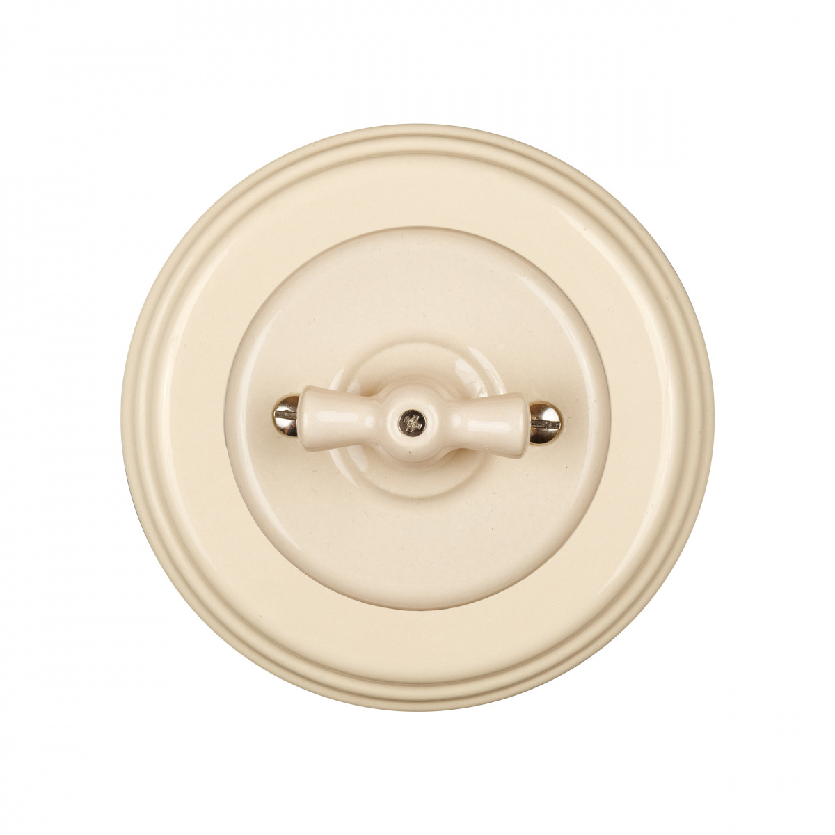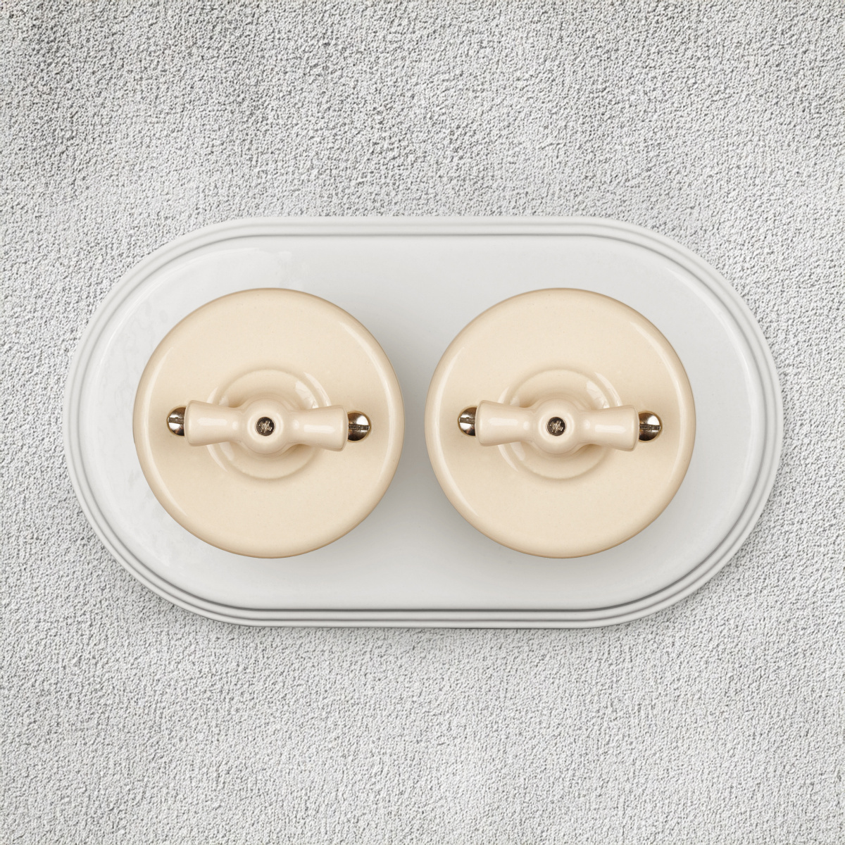 Изготовлен из экологически чистого материала – керамики. Имеет уникальный дизайн: оформлен в стиле ретро, оснащен поворотным переключателем вместо клавиши. Применяется с открытой проводкой, хорошо сочетается с текстильным кабелем. При необходимости может использоваться и при монтаже скрытой электропроводки.