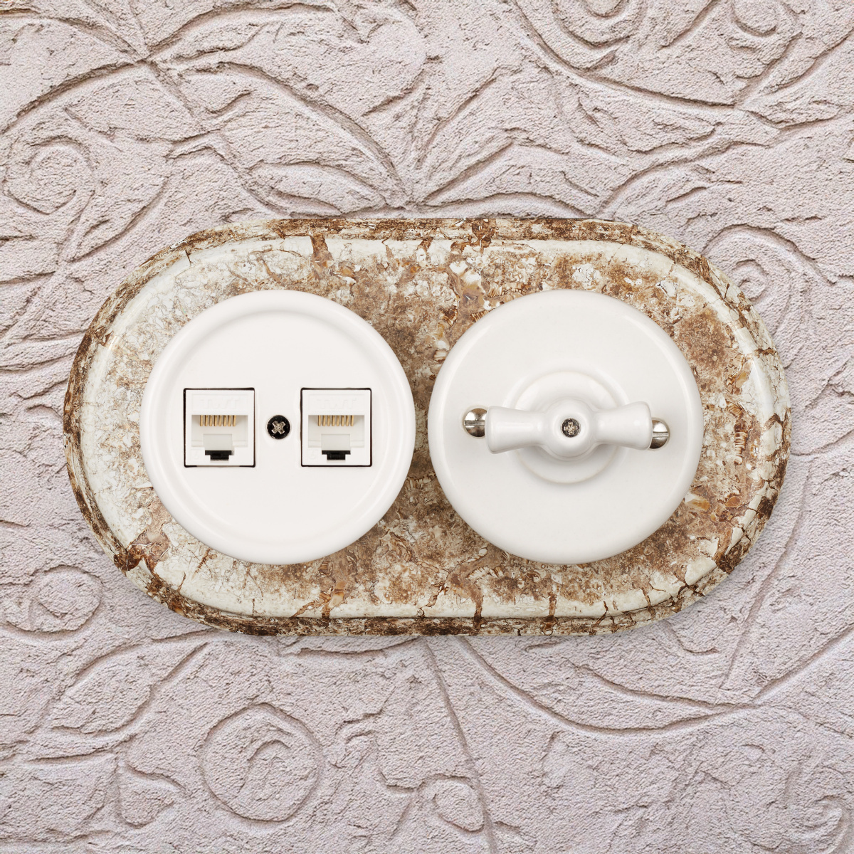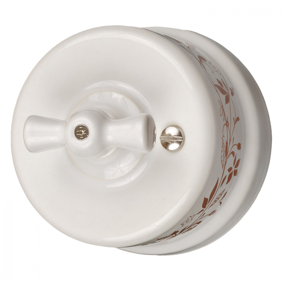 <img width="307" alt="agni_S_1.png" src="https://bironi.ru/upload/medialibrary/84d/spzv046ig368l8a2400q0ikrxys4c8ld/agni_S_1.png" height="78" title="agni_S_1.png"><br> Модель для наружного монтажа в белом цвете с орнаментом. Изделие выполнено из керамики. Материал не меняет цвет под воздействием солнечных лучей. Сохраняет прочность при температурных перепадах и повышенной влажности воздуха. Может смело устанавливаться на кухне. Подходит для помещений, оформленных в стиле винтаж, ретро, классика и Прованс. Продукция Bironi соответствует стандартам электробезопасности. Монтаж устройств выполняется в коммерческих и жилых помещениях. В комплект входят крепежные элементы