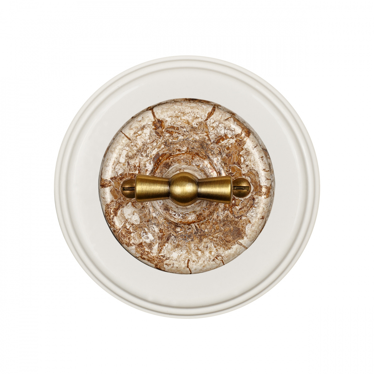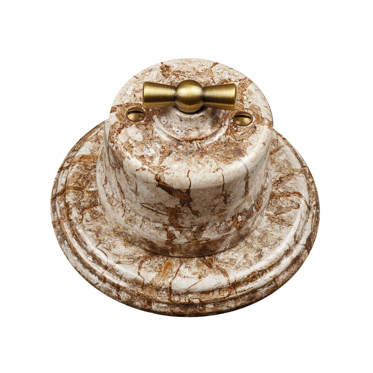 <img width="307" alt="agni_S_1.png" src="https://bironi.ru/upload/medialibrary/84d/spzv046ig368l8a2400q0ikrxys4c8ld/agni_S_1.png" height="78" title="agni_S_1.png"><br> Изготовлен из экологически чистого материала – керамики. Оснащен поворотным переключателем вместо клавиши. Изделие выполнено из долговечных, надежных материалов, устойчиво к истиранию и механическим воздействиям. Превосходно эмитирует текстуру природного мрамора. Применяется с открытой проводкой, хорошо сочетается с текстильным кабелем. При необходимости может использоваться и при монтаже скрытой электропроводки.