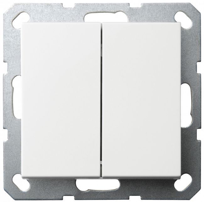 G3023W/Выключатель двухклавишный 10A 250V~ с накладкой, цвет белый глянцевый