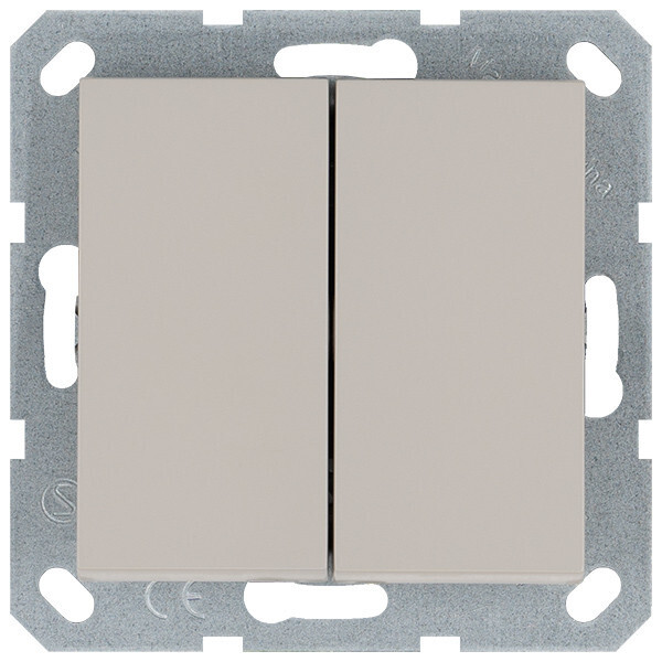 Выключатель двухклавишный 10A 250V~ с накладкой, цвет Тауп