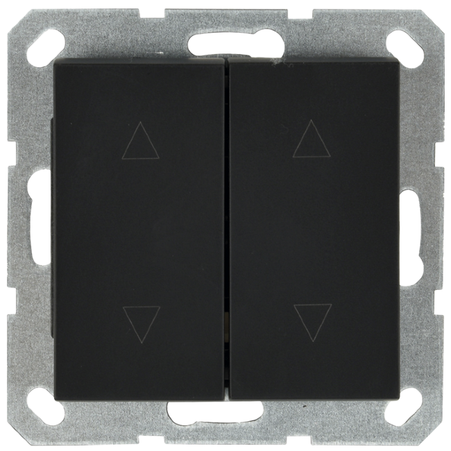 Выключатель двухклавишный для штор 10A 250V~ с накладкой, цвет черный матовый (soft touch)