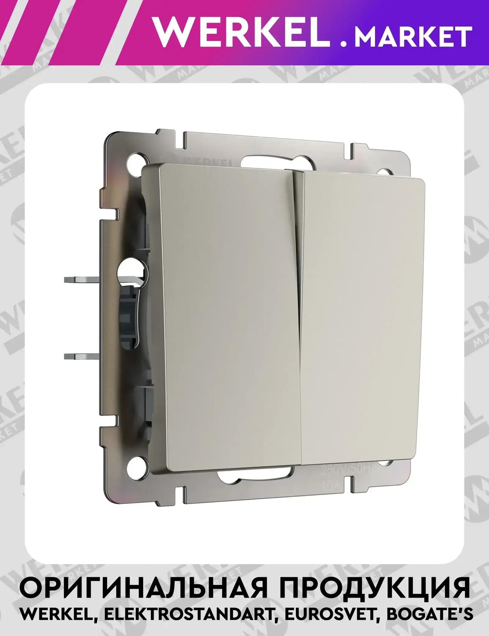 Выключатель двухклавишный дымчатый W1220004 Werkel – комфортное управление освещением в вашем доме Ищете надежное и стильное решение для управления несколькими источниками света из одной точки? Выключатель двухклавишный дымчатый W1220004 Werkel станет идеальным выбором. Благодаря двум клавишам вы сможете легко управлять разными группами освещения, создавая комфортную атмосферу в вашем доме или офисе. Основные характеристики выключателя двухклавишного W1220004: Тип изделия: двухклавишный выключатель Серия: Встраиваемые механизмы дымчатый Цвет изделия: дымчатый (универсальный оттенок, который гармонично впишется в любой интерьер) Материал: металл (обеспечивает прочность, долговечность и устойчивость к механическим повреждениям) Технические параметры выключателя двухклавишного: Номинальное напряжение: 250 В, 50 Гц Максимальная мощность: 10 А Степень пылевлагозащиты: IP20 (идеально подходит для использования в сухих помещениях) Контактные зажимы: самозажимного типа (упрощают монтаж и обеспечивают надежное соединение) Сечение подключаемых проводов: от 0,75 мм² до 2,5 мм² Размеры выключателя W1220004 Werkel: Высота: 38 мм Ширина: 70 мм Длина: 70 мм Преимущества: Управление несколькими источниками света: две клавиши позволяют независимо управлять разными группами освещения, что особенно удобно в гостиных, спальнях или кухнях с разделенным освещением. Долговечность: срок службы составляет 10 лет, а гарантийный срок – 12 месяцев. Простота установки: самозажимные контакты значительно упрощают монтаж, экономя время как профессионалов, так и любителей. Эстетика: дымчатый цвет и современный дизайн делают выключатель универсальным решением для любого интерьера – от классического до минималистичного. Безопасность: изделие соответствует всем стандартам качества и безопасности, обеспечивая надежную работу в течение всего срока службы. Где использовать? Выключатель W1220004 Werkel идеально подходит для установки в жилых помещениях (спальни, гостиные, кухни), офисах, коридорах и других сухих помещениях. Благодаря своей функциональности и стильному дизайну он станет не только практичным, но и декоративным элементом интерьера. Почему выбирают Werkel? Бренд Werkel известен своим вниманием к деталям и высоким качеством продукции. Каждый выключатель проходит строгий контроль перед поступлением в продажу, что гарантирует его надежность, безопасность и долговечность. Закажите прямо сейчас! Добавьте выключатель двухклавишный дымчатый W1220004 Werkel в корзину и создайте комфортное, стильное и функциональное пространство в своем доме. У нас доступные цены, быстрая доставка и гарантия качества на все товары!